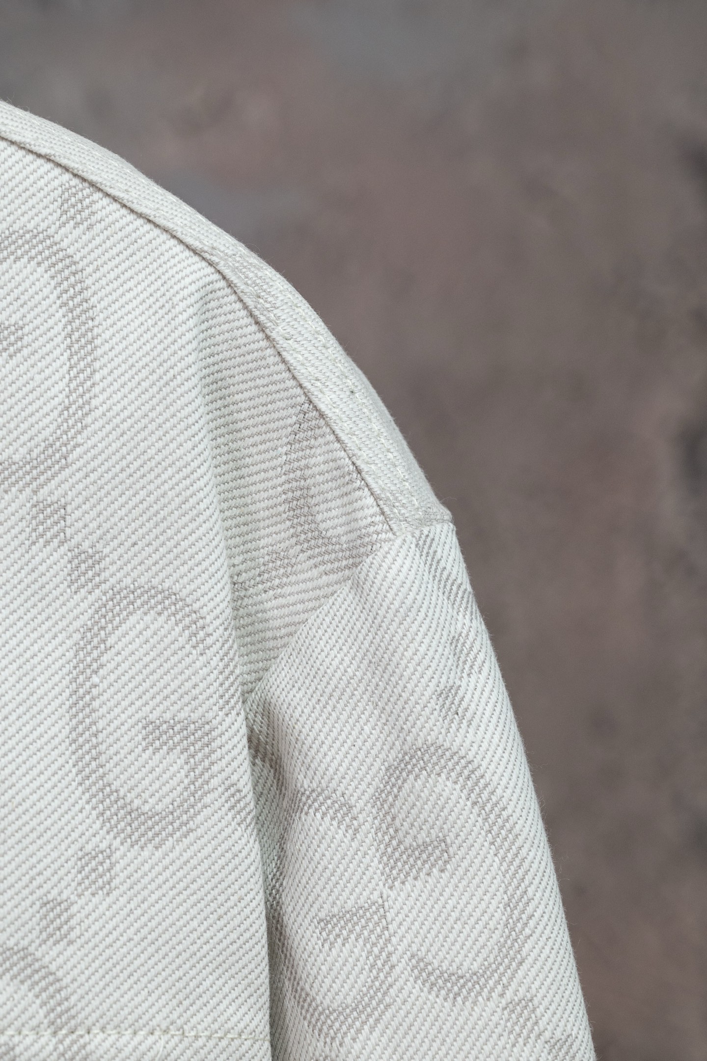 原版购入开发面料它的纱线是沿用古老的工艺 一种叫拔染的做法把纱线染成一段粉一段白 水洗扎染工艺操作难度十分巨大 然后再织成面料还要经过特殊水洗处理 之后才能制作