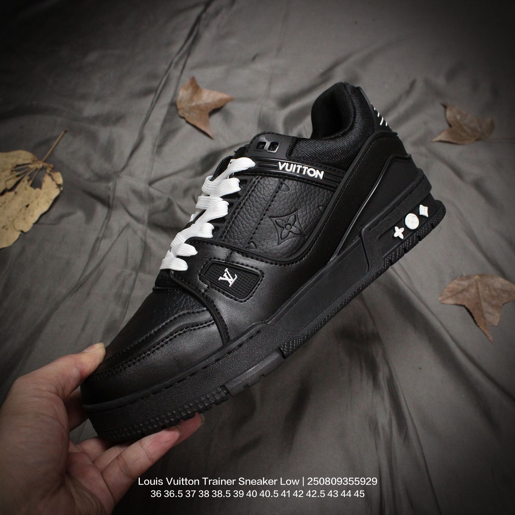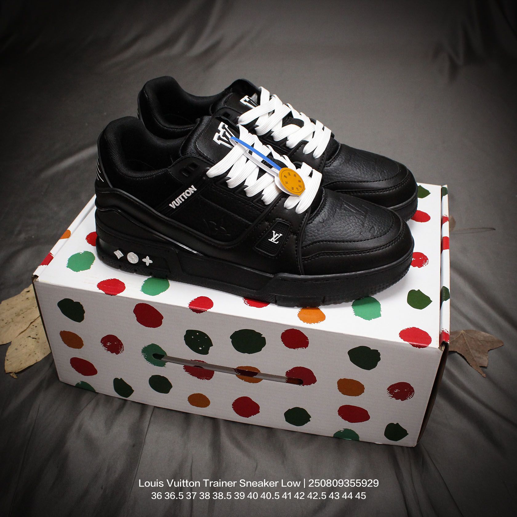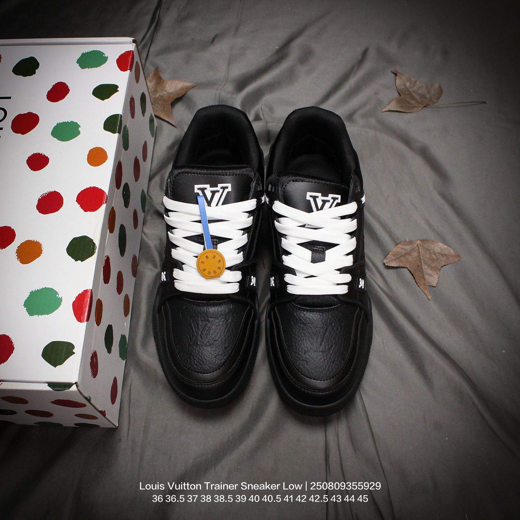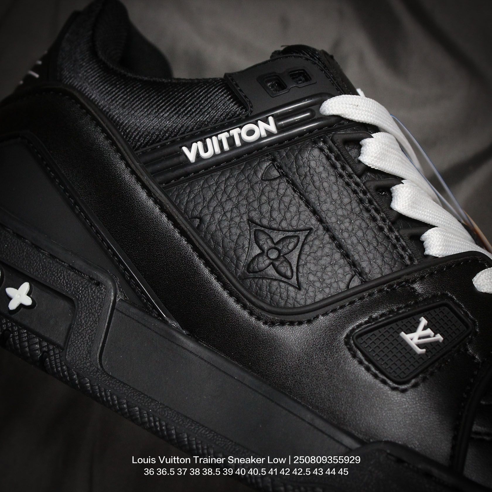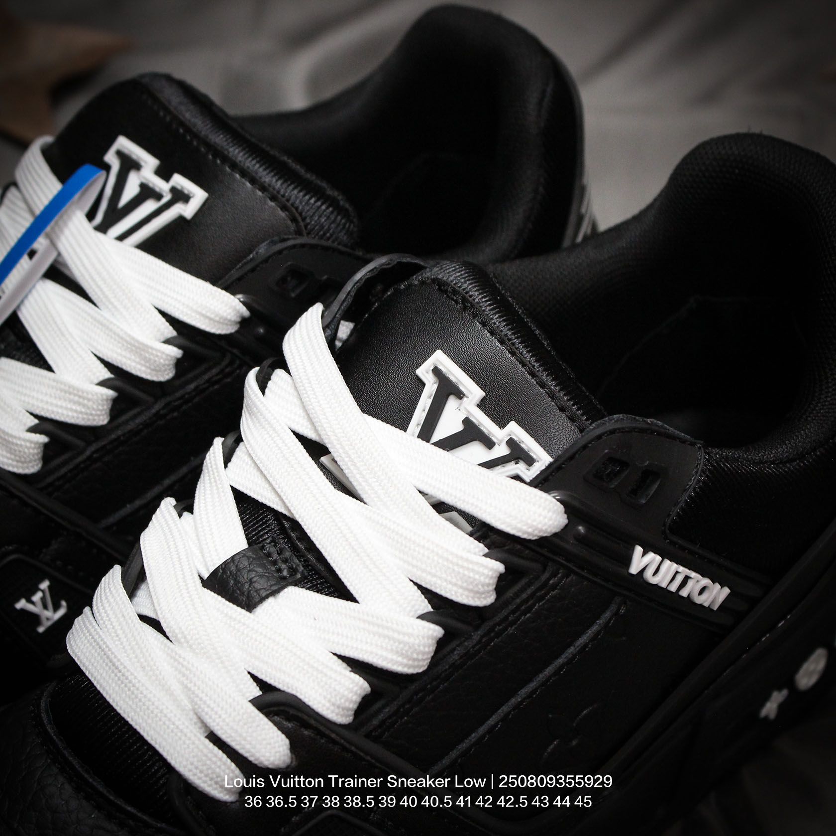 Louis Vuitton 路易威登 男女鞋配置厚实抽屉礼品鞋盒 采用荔枝纹纤维革组合粒面牛剖革鞋面材质 鞋垫嵌入软脚感EVA物料 外置TPR光泽隔色鞋底法国巴黎百年奢侈品牌LV路易威登Louis Vuitton Trainer Sneaker Low 运动系列低帮复古百搭休闲运动文化篮球板鞋