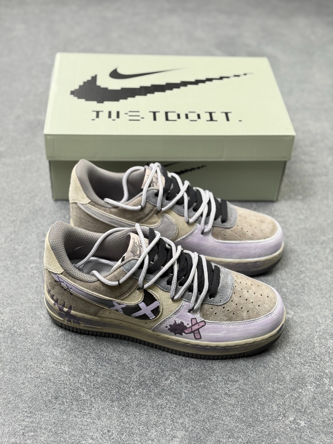 海外限量发售 公司级NIke Air Force 1 07 Low 灰紫抽绳 空军一号低帮 运动鞋 休闲鞋 折边针车 工艺难度大 原楦头原纸板 原装鞋盒 原厂鞋底 超高清洁度 细节完美