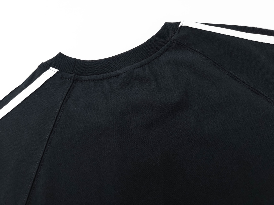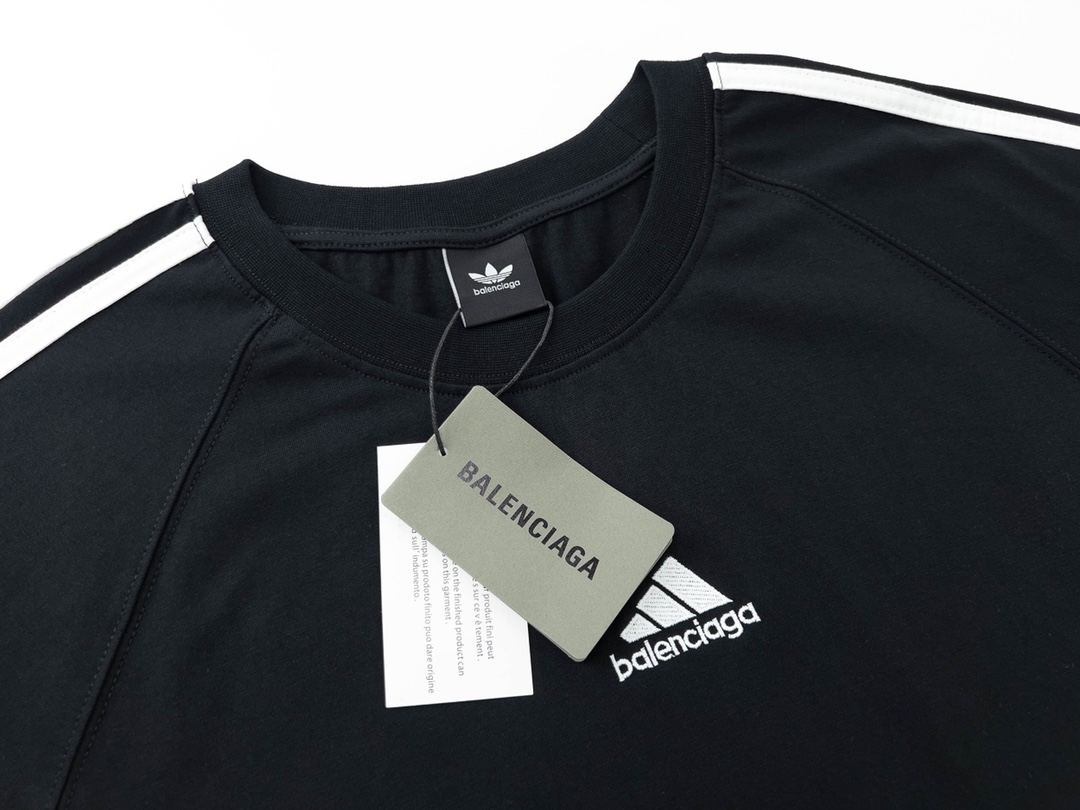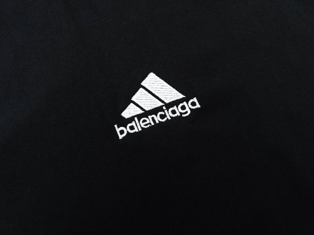 细节图 顶级版本 官网品质 BALENCI GA 巴黎联名Adidas阿迪达斯三叶草三条纹LOGO绣花侧边撞色短袖T恤