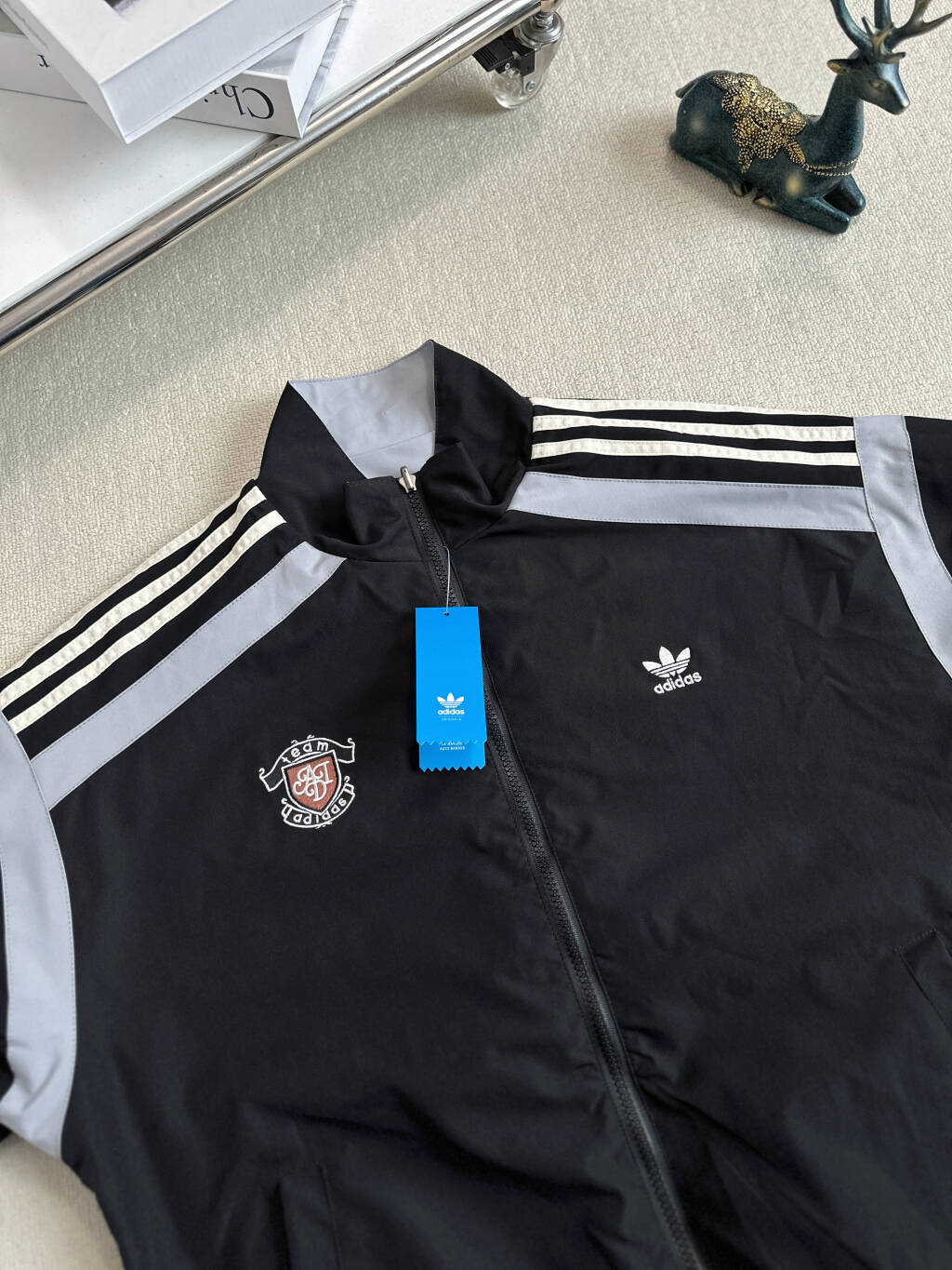 细节在线 随意对比 采用原版面料 柔软舒适 胸前定制刺绣三叶草logo 原版模具开模 原版复刻 专柜定色定染 同款藏蓝色面料 同款提花记忆面料硬度适中 上身挺括不拖拉 初秋外穿 冬季内搭都适合