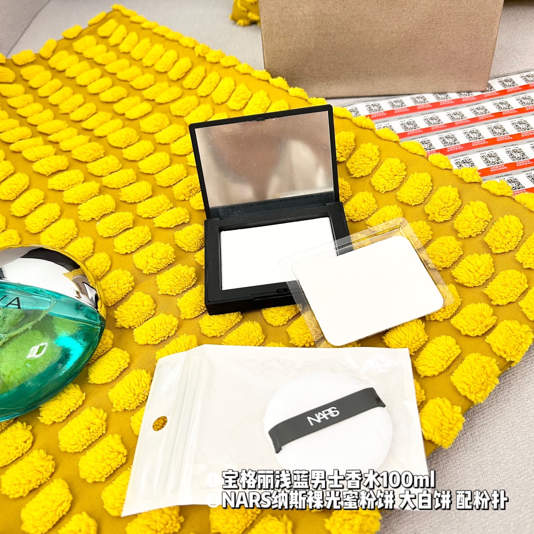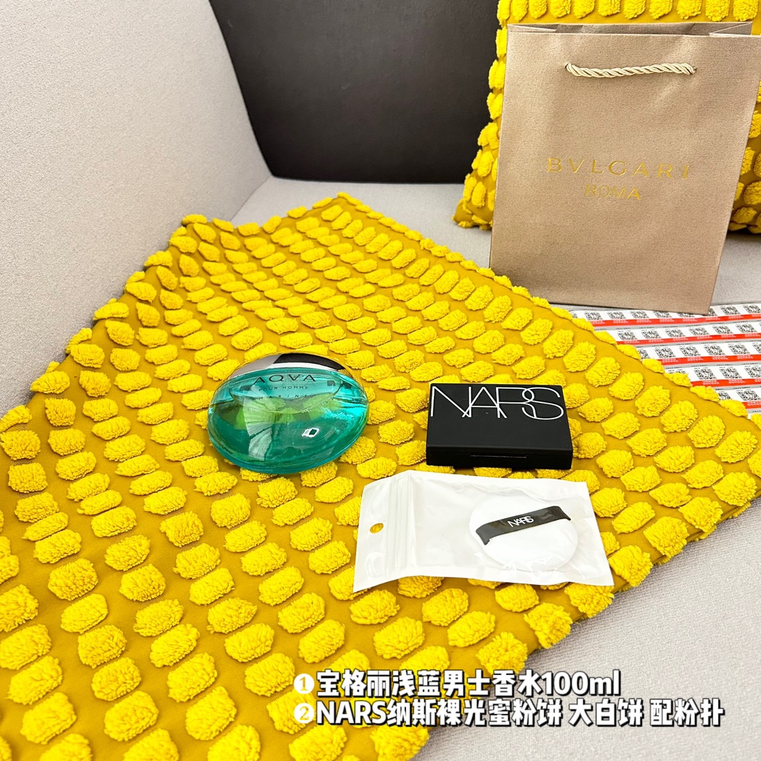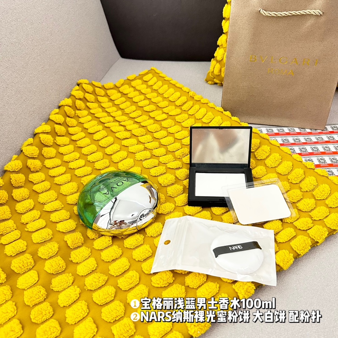 超值2件套 礼袋装 2件套 宝格丽浅蓝男士香水100ml 原单 NARS纳斯裸光蜜粉饼 大白饼 配粉扑 原单 配礼品袋 超级精美 送礼自留都可的超值套组 从妆容到味道从新改变让你拥有另外一种气质 均支持扫码