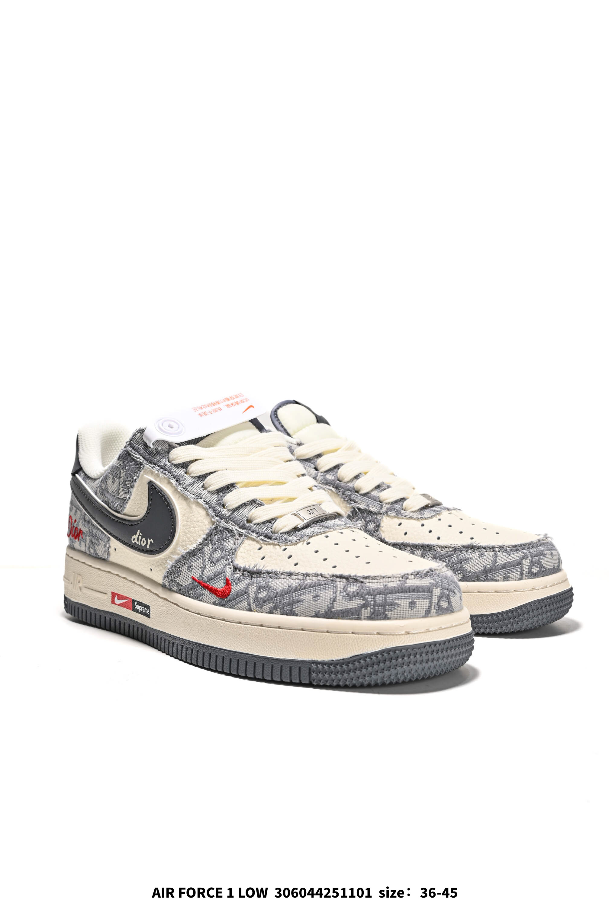海外爆款限量发售 公司级Nike Air Force 1 07 Low 迪奥联名 花纹米灰红 空军一号 高端定制 低帮 运动鞋 休闲鞋 折边针车 工艺难度大 原楦头原纸板 原装鞋盒 定制五金配件 内置全掌气垫 原厂鞋底