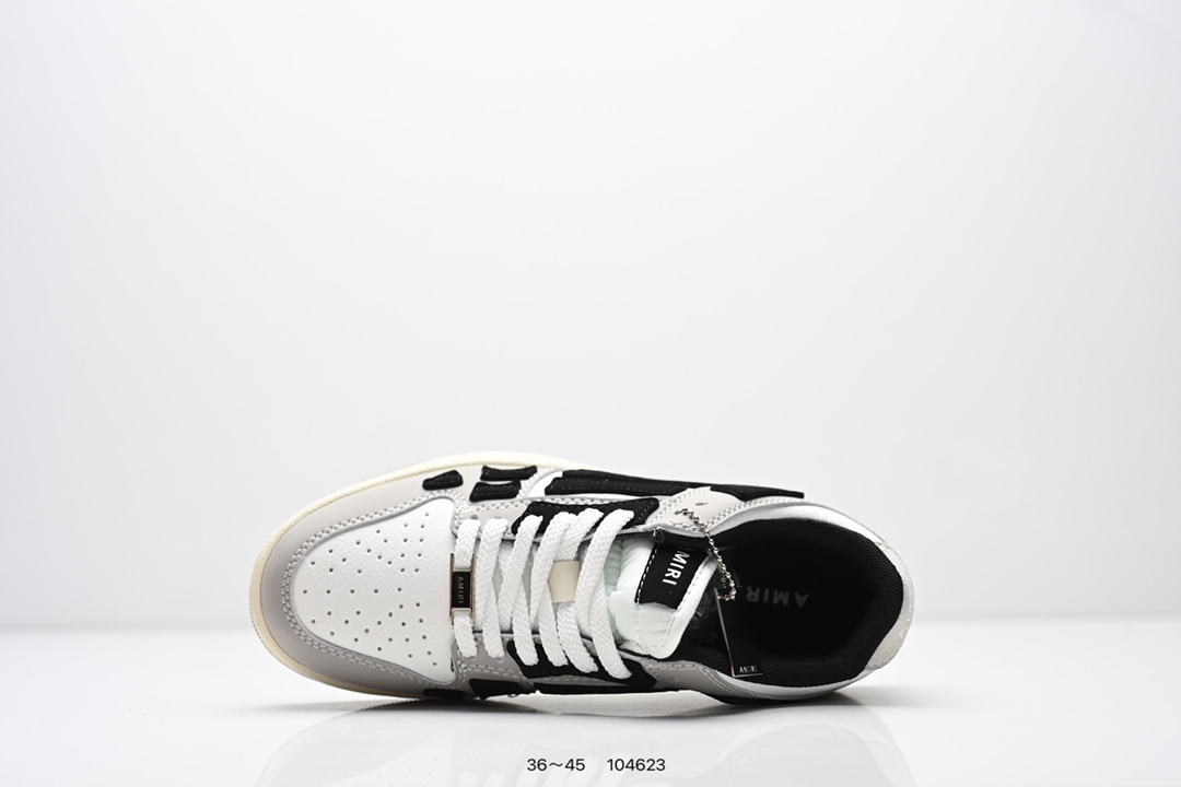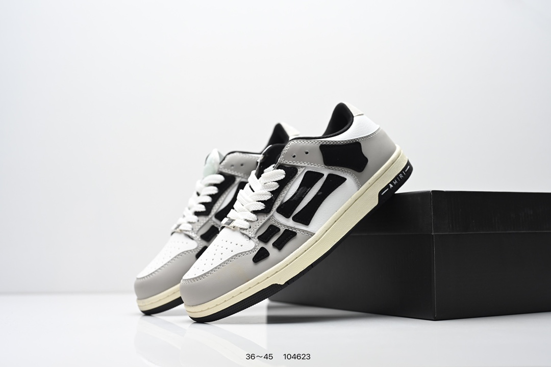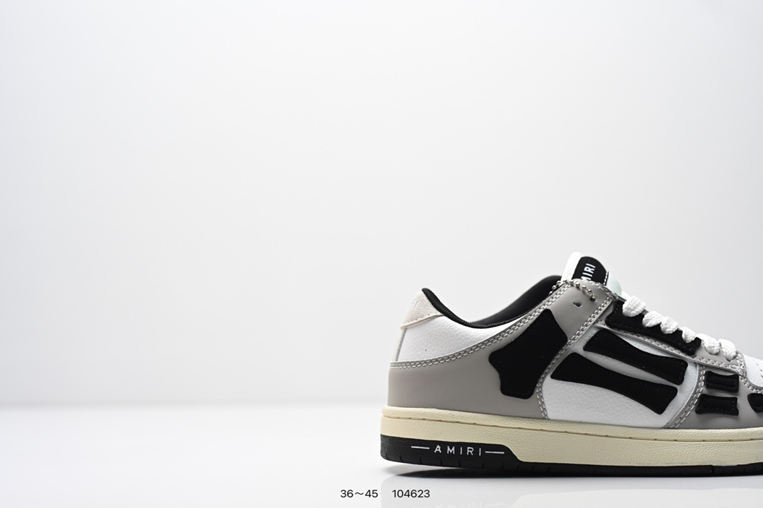 Amiri 埃米尔Skeleton Low Skel top Sneakers 骨骼系列情侣鞋 当潮顶流产品 众星上脚 低帮运动休闲板鞋 正确骨头形状 鞋舌外翻细节 头层牛皮双层加厚鞋面 鞋帮侧面骨头采用两张牛皮贴合处理 立体感更好 皮料切口均油边处理 定制金属LOGO铭牌及吊牌 并配有官方购物袋尽显高端大气