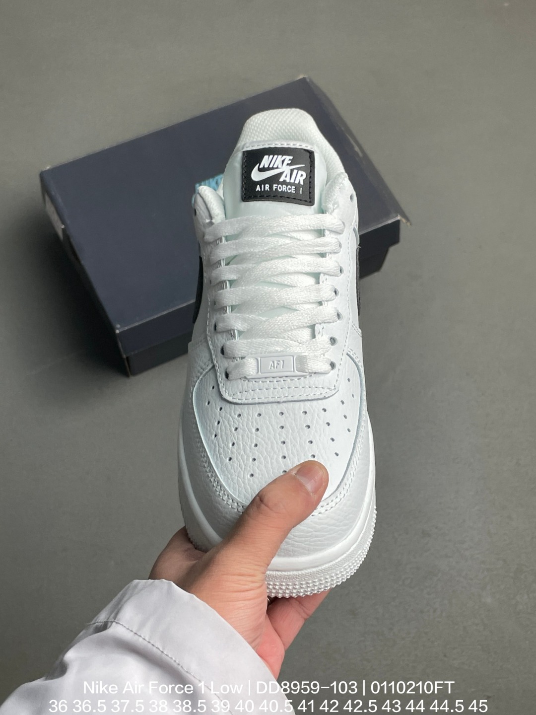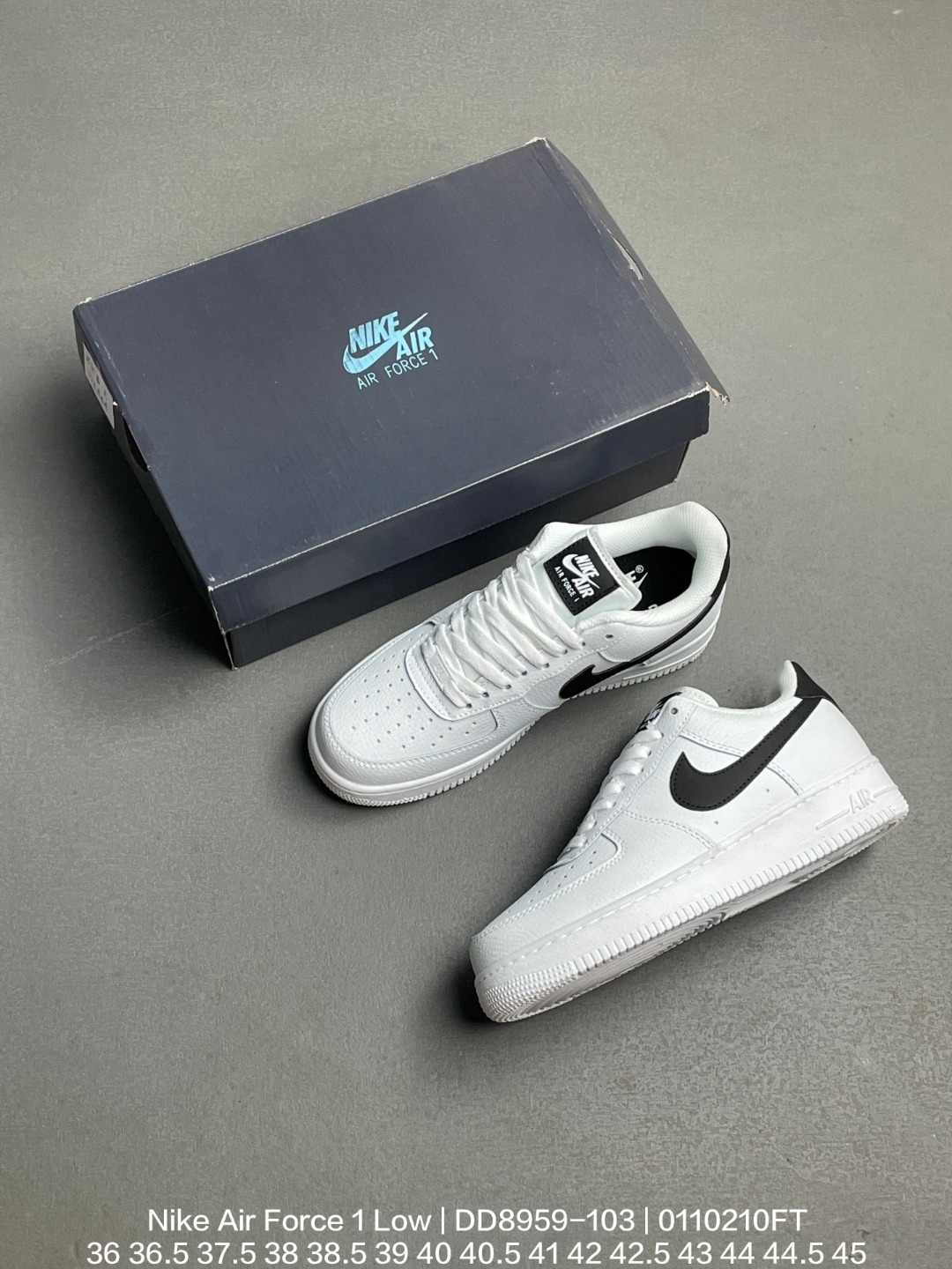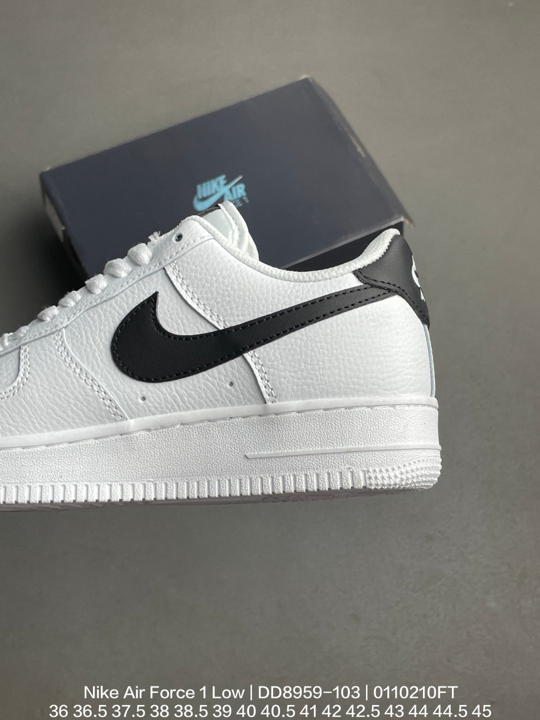 Nike 耐克 男女鞋真标带半码 原楦开发版型 采用硬质牛培荔枝皮革鞋面材质 内置全掌Air Sole气垫耐克Nike Air Force 1 Low White Black 空军一号经典低帮百搭休闲运动板鞋 皮革荔枝纹白黑钩子 DD8959 103