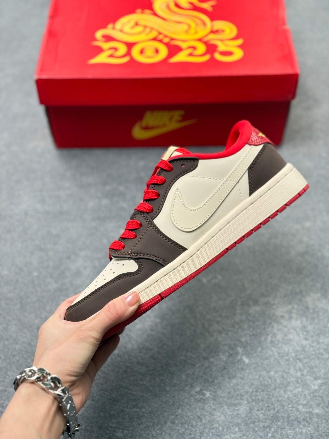 Travis Scott x Fragment Design x Air Jordan 1 Low OG SP AJ1 乔1 蛇年限定 蛇鳞红勾 低帮文化休闲板鞋 CH6336 020