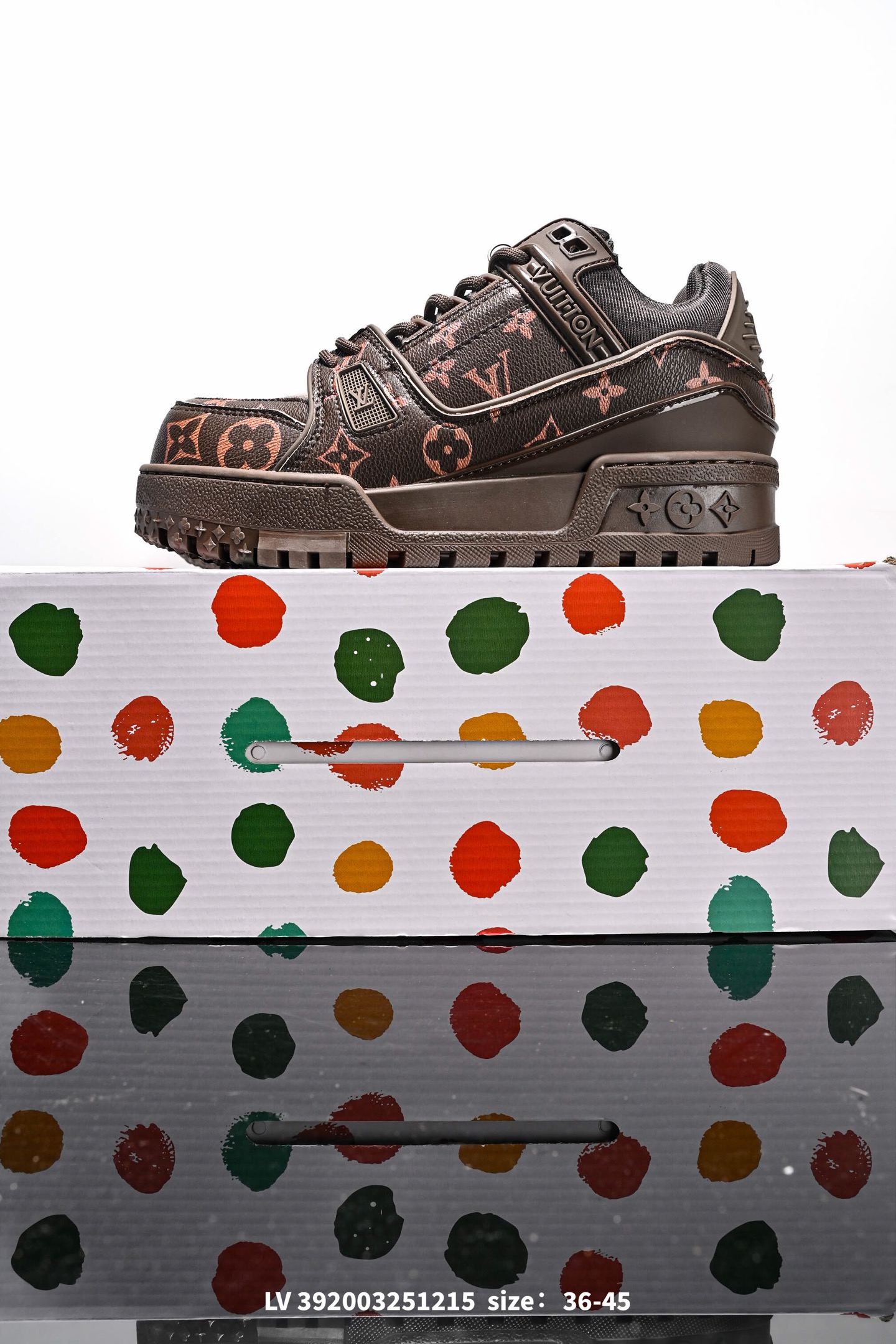Louis Vuitton 路易威登 小胖丁 男女鞋广东原产 升级厚实抽屉礼品鞋盒及包装说明书防尘布袋物件 采用细柔小牛皮革鞋面材质 鞋垫嵌入加厚软感EVA物料 后跟耐弯折滴塑支撑片 全新开发TPU光泽组合隔色鞋底这双 变胖 了的Trainer好受瞩目 又大又圆 全新LV路易威登Louis Vuitton Trainer Maxi Low Leather Sneaker 面包版马克西系列低帮休闲运动文化百搭篮球板鞋
