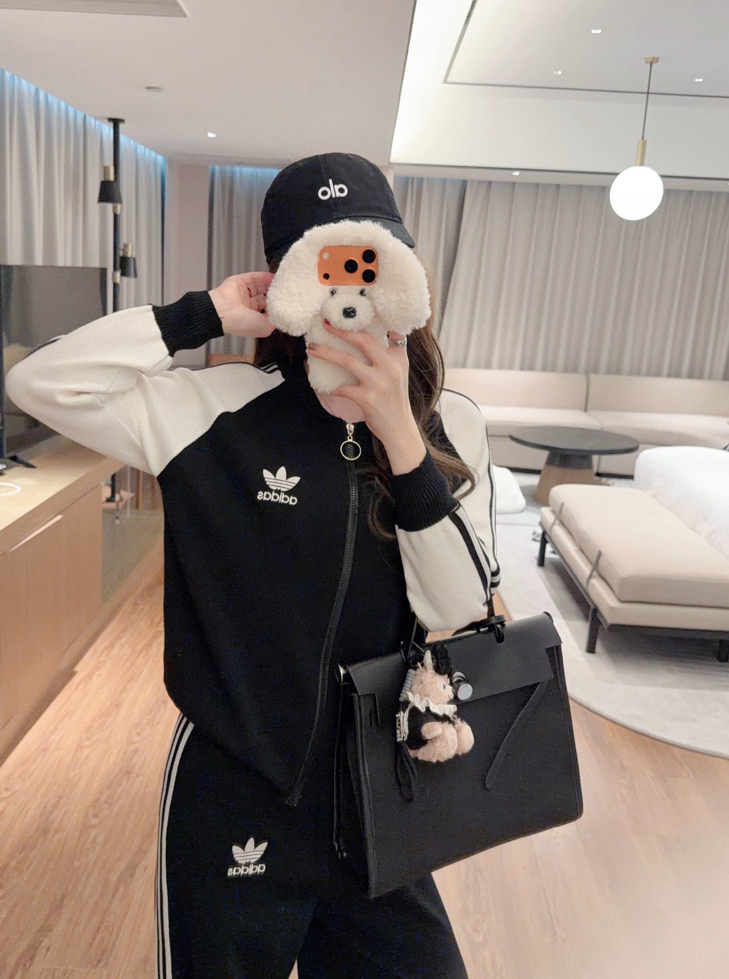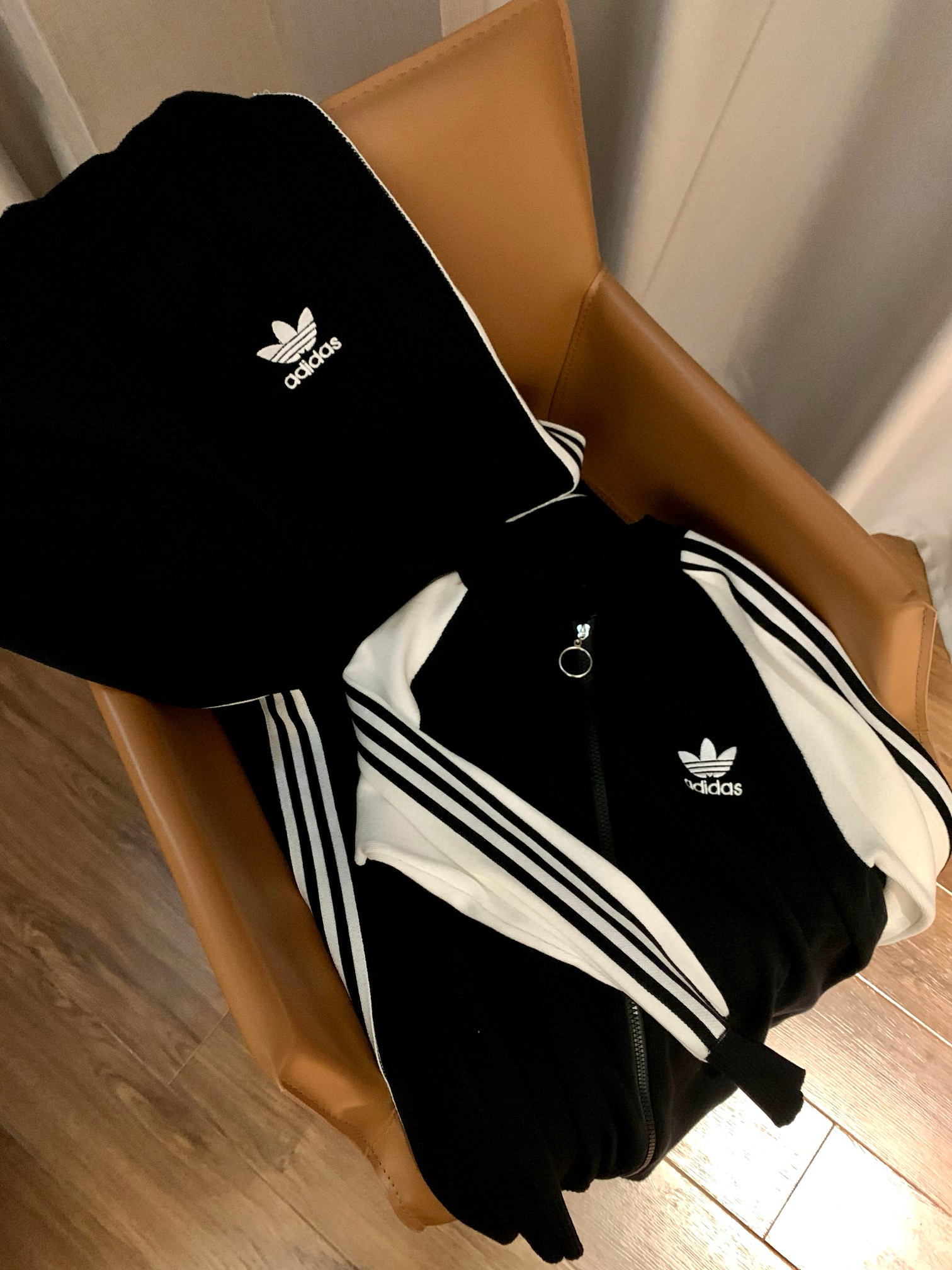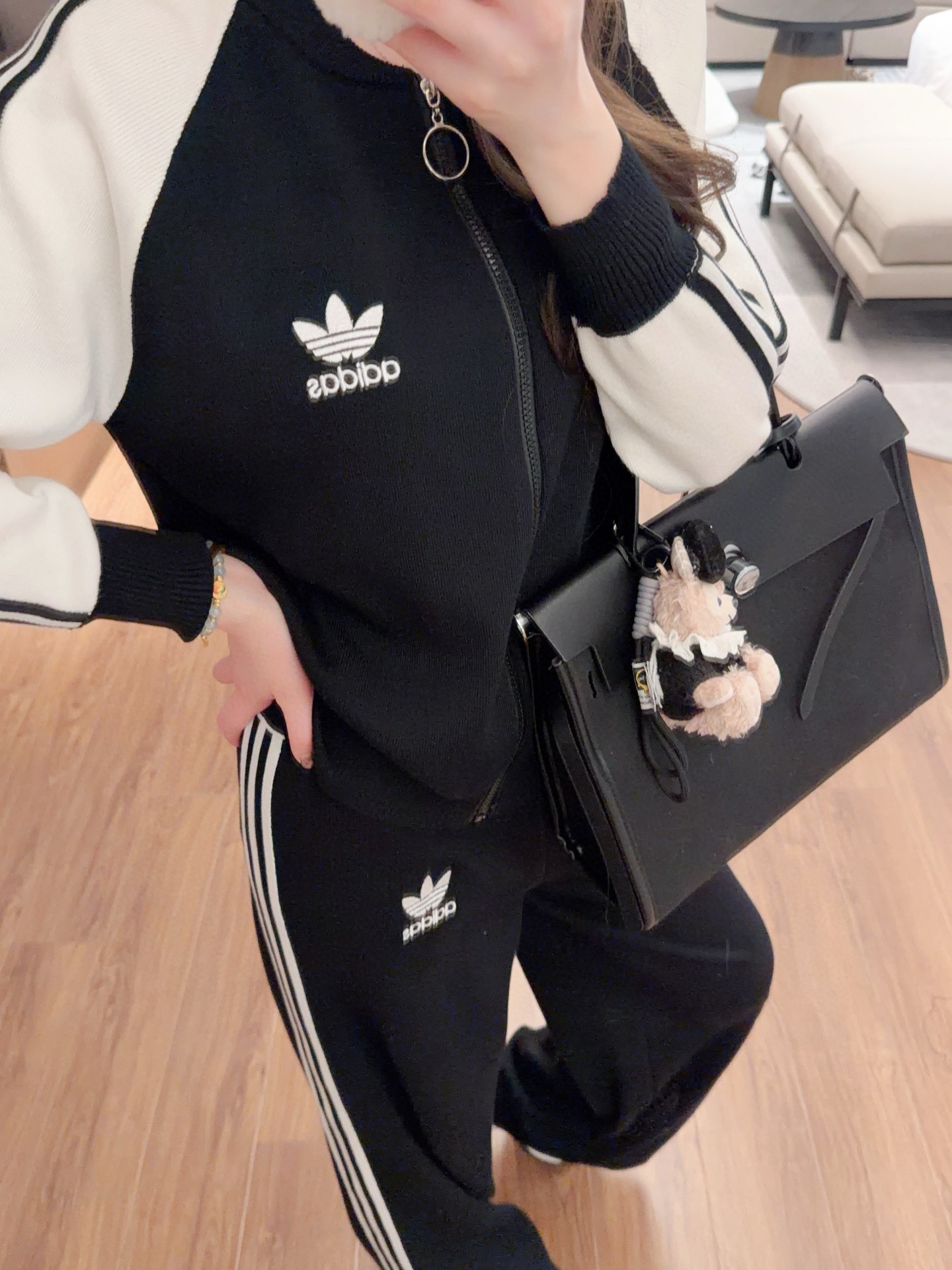 Adidas 阿迪达斯AD三叶草字母logo刺绣拼色拉链开衫长裤针织套装