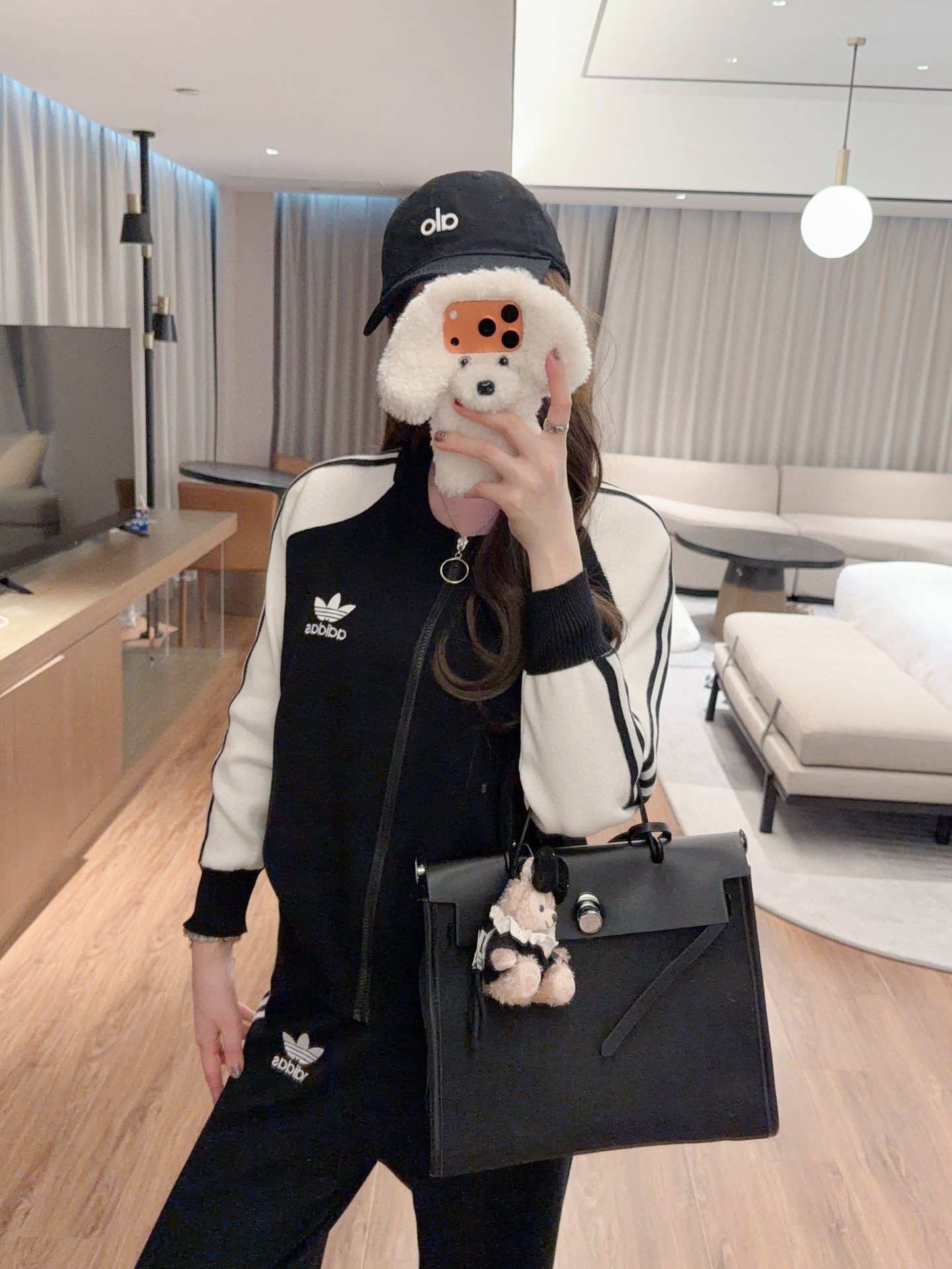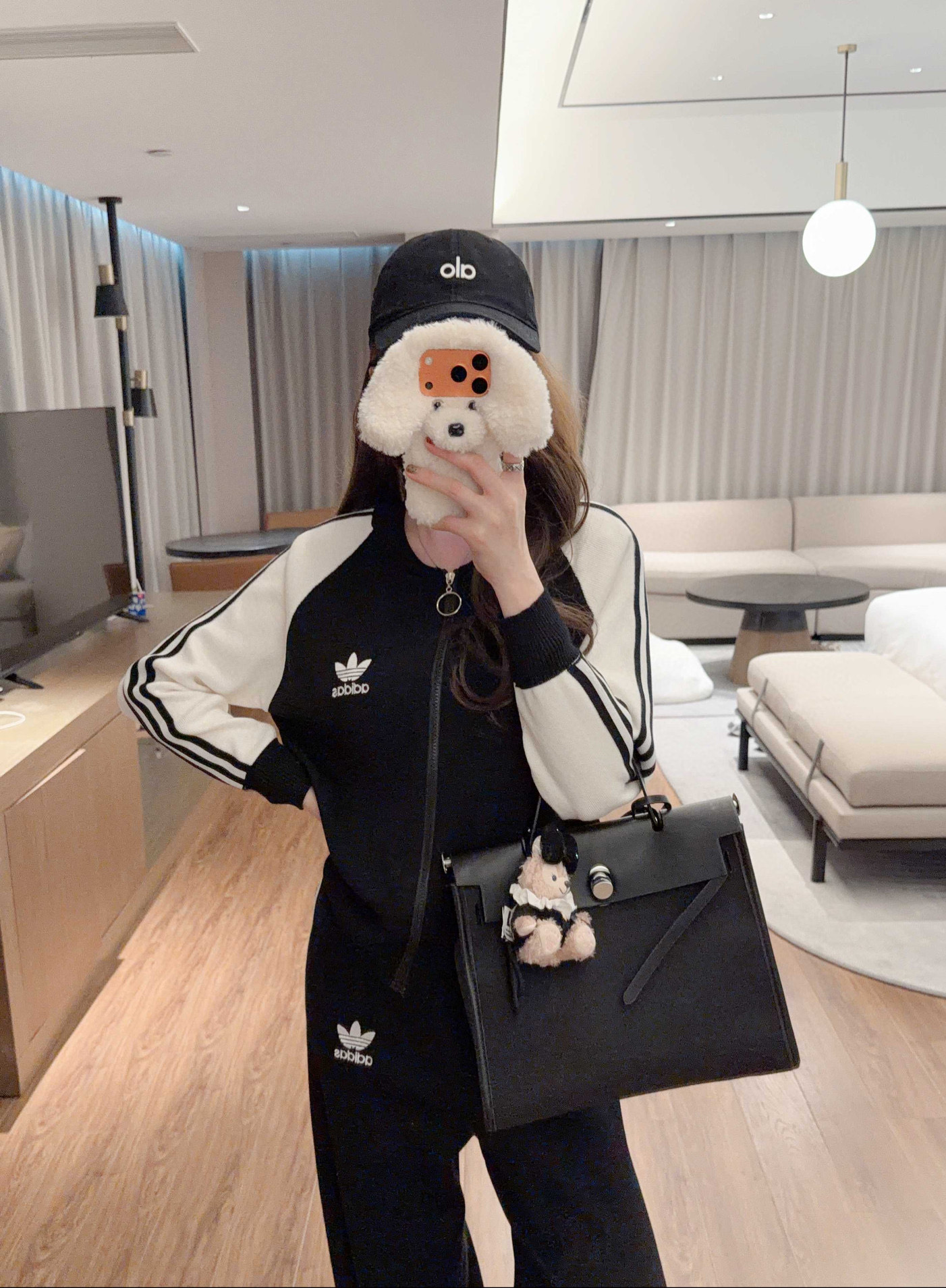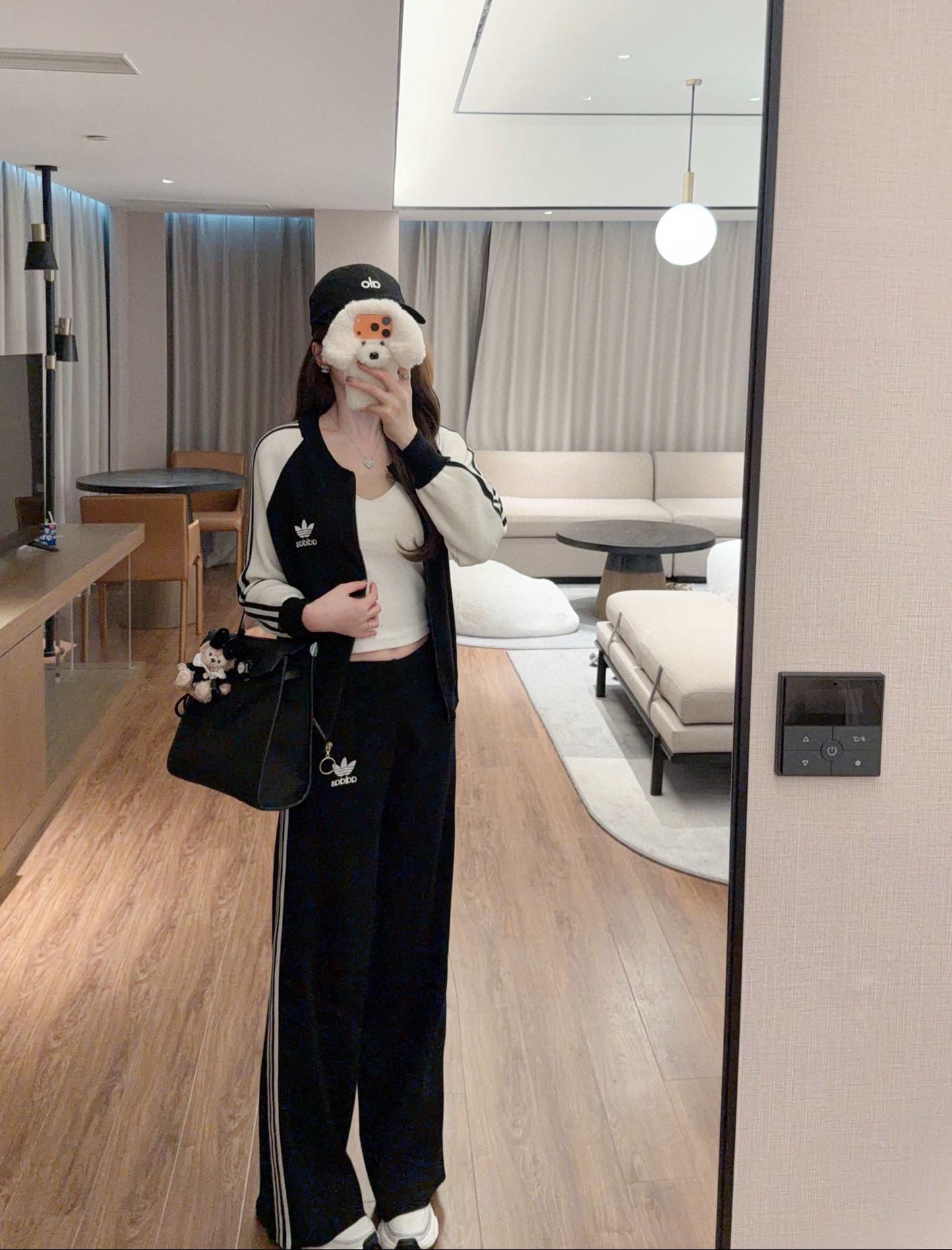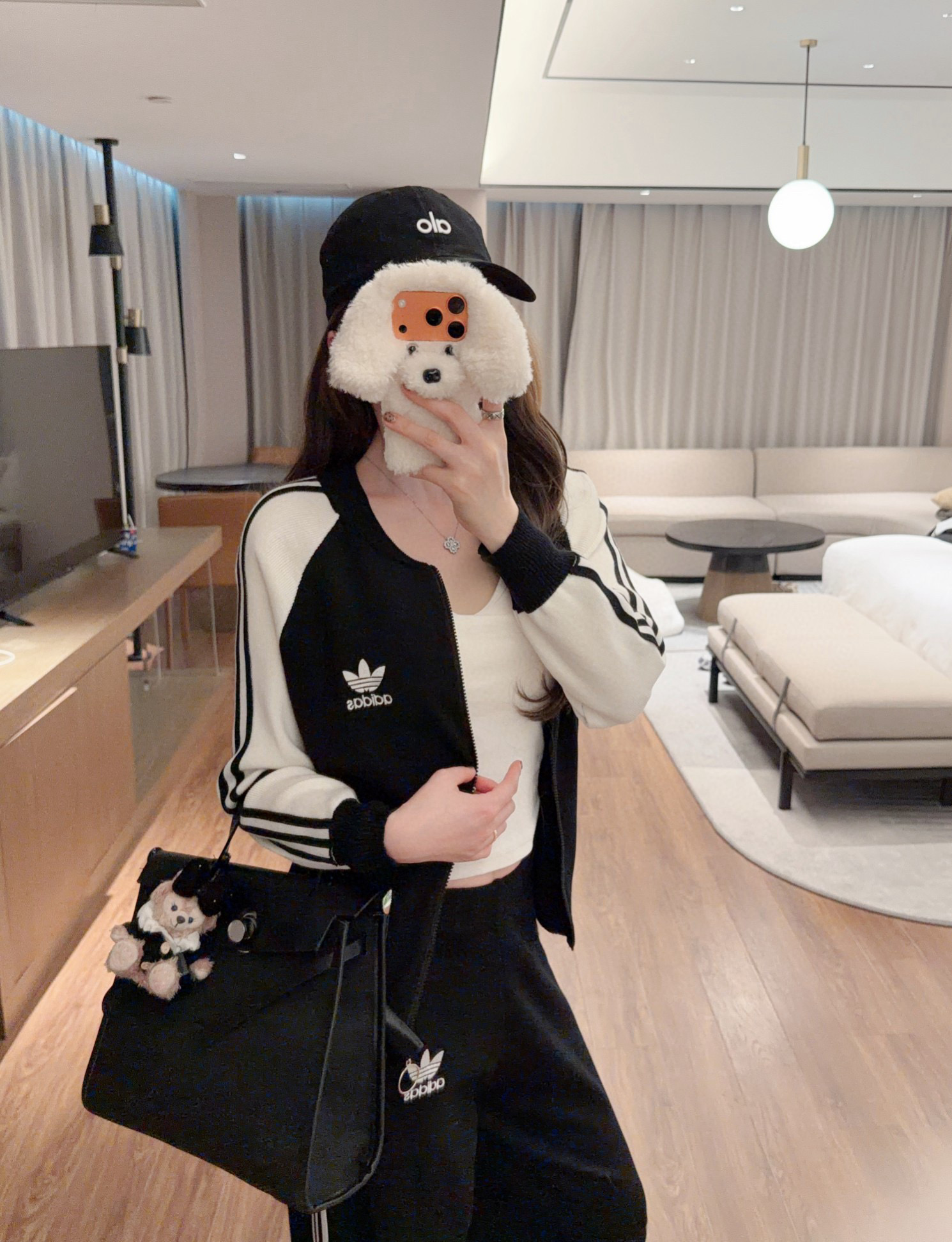 Adidas 阿迪达斯AD三叶草字母logo刺绣拼色拉链开衫长裤针织套装