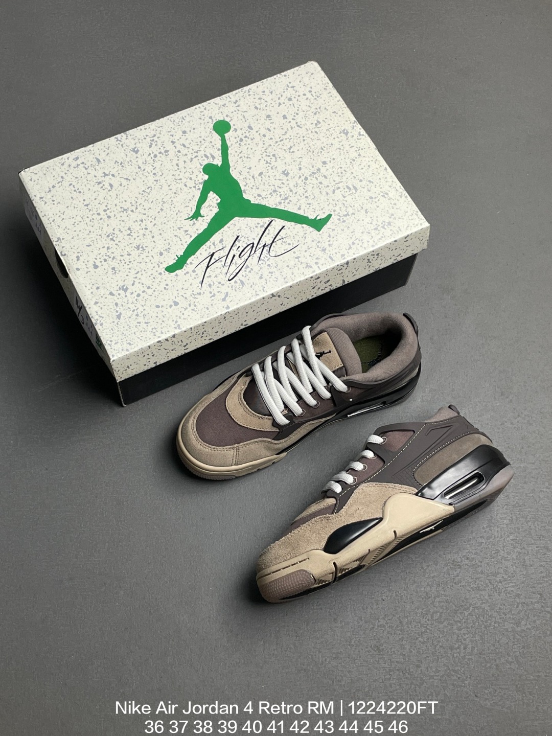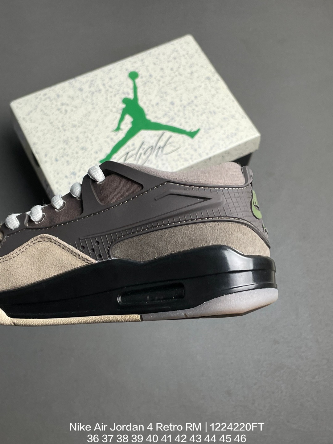 Jordan 乔丹 采用翻毛皮组合粒面牛剖革鞋面材质 缜密定位拉帮及注胶效果 中底PU内嵌开窗式Air缓震气垫颜值没的说 耐克Nike Air Jordan 4 Retro RM Hemp 迈克尔 乔丹AJ4代重置版系列低帮复古休闲运动文化篮球鞋