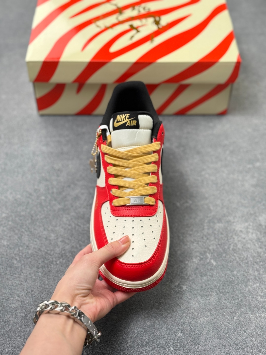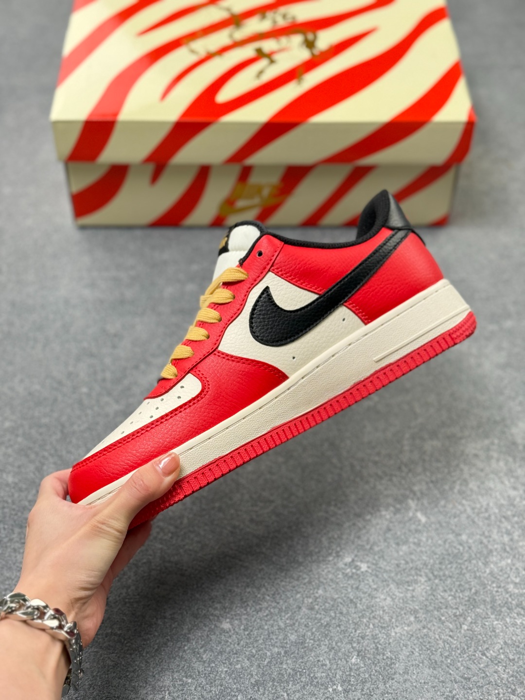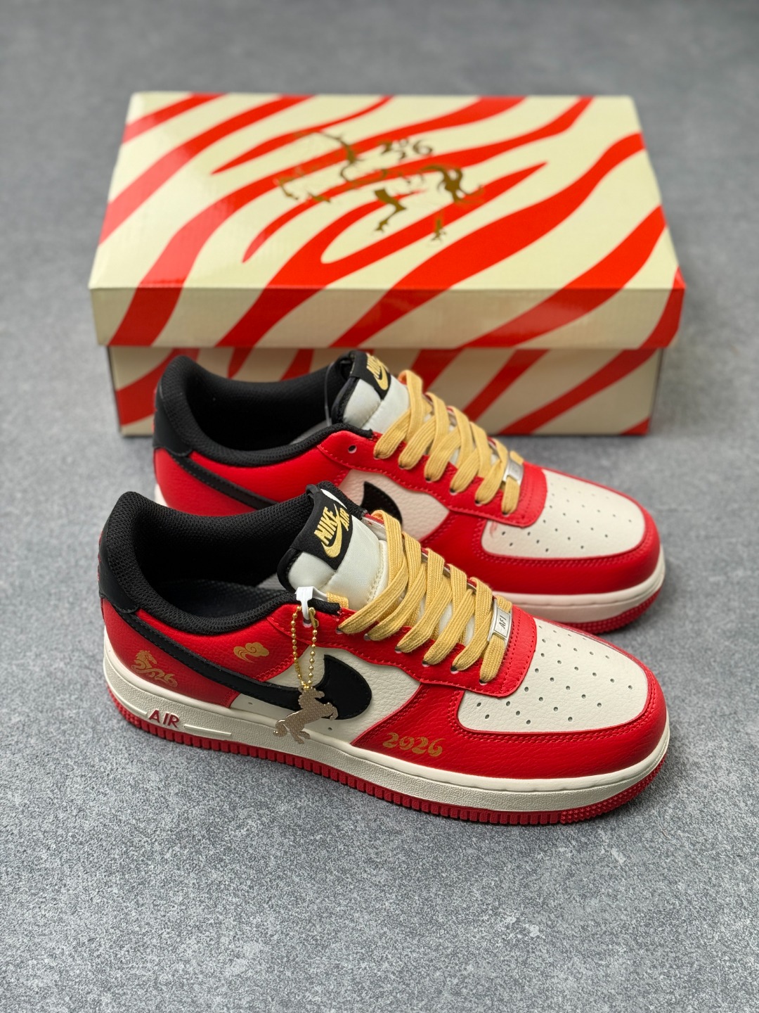 马年限定海外爆款限量发售 高端定制Nike Air Force 1 07 Low 马年限定 红运马年 高端定制 暖黄鞋带配祥云刺绣 复古米白中底 红色外底红白撞色 酒红勾标 鞋身 2026 烫金标识 跃马图腾 低帮休闲板鞋 定制鞋盒 大厂纯原品质出货 超高清洁度 皮料切割干净无任何毛边 细节完美