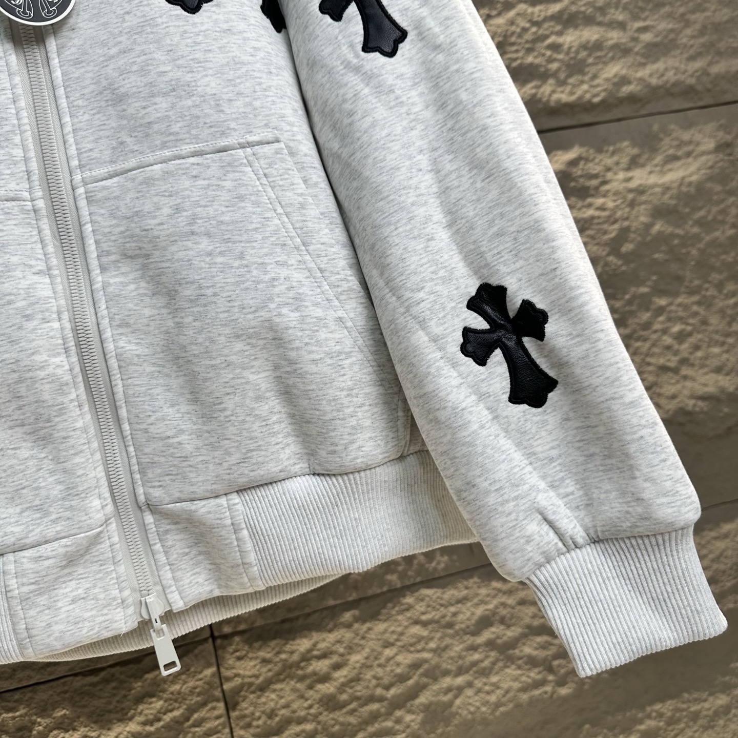 215138731 - 克罗心2025冬季新十字贴皮刺绣加厚羊羔毛连帽开衫卫衣外套美 349855