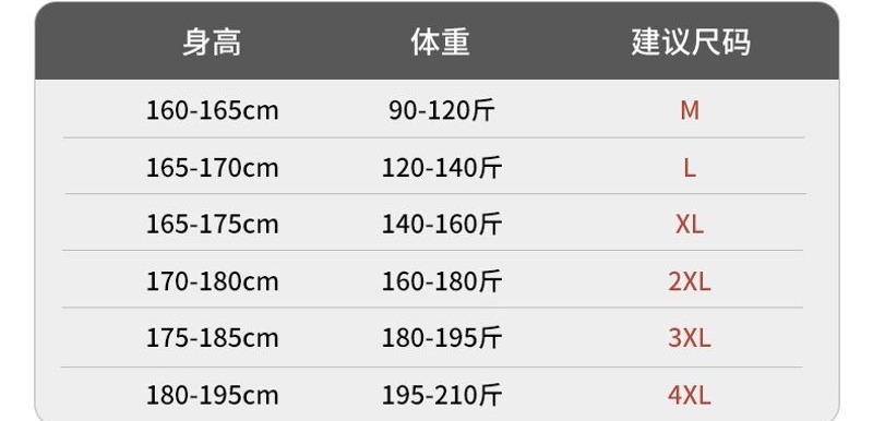 尺码 M 4XL