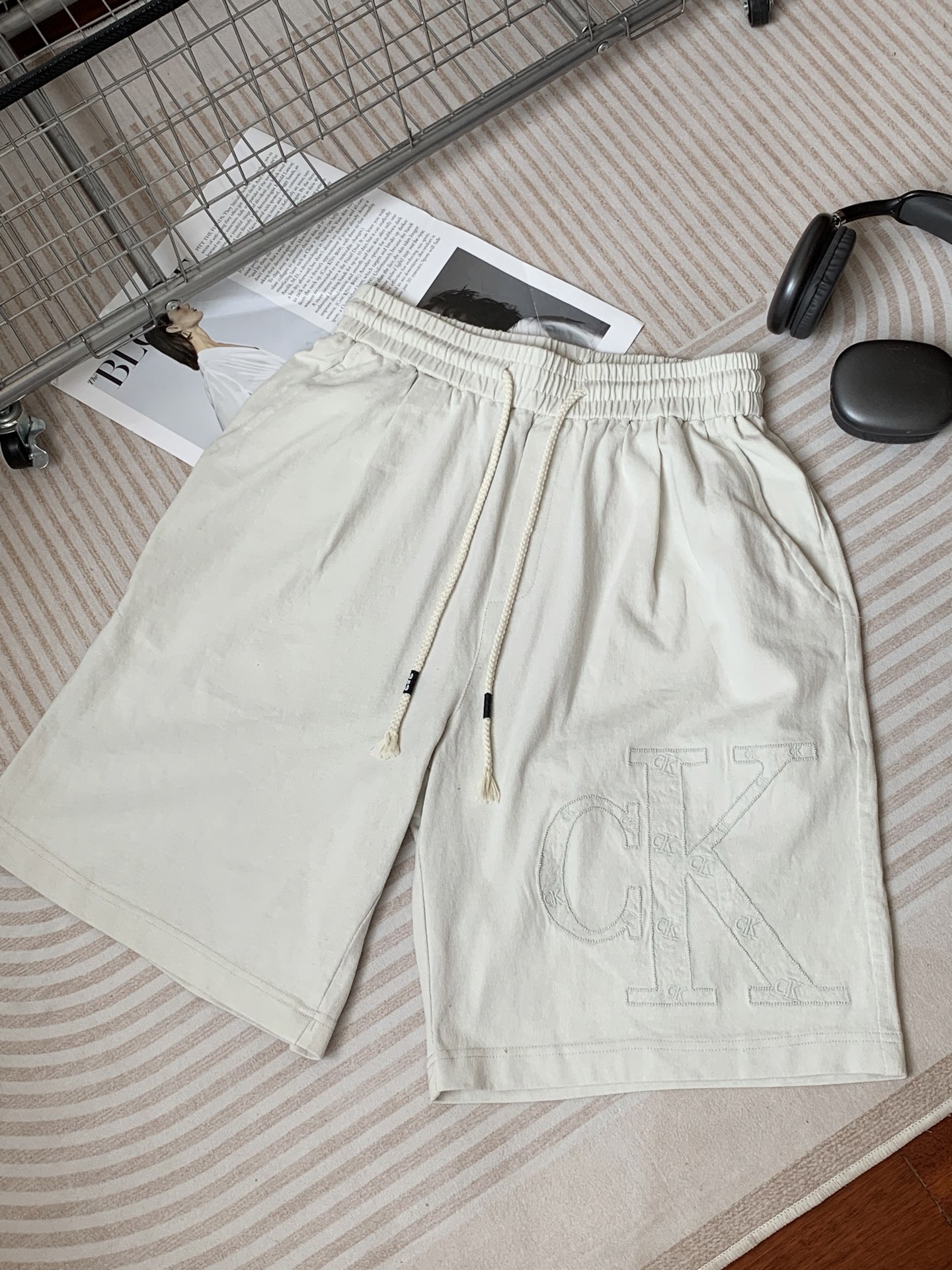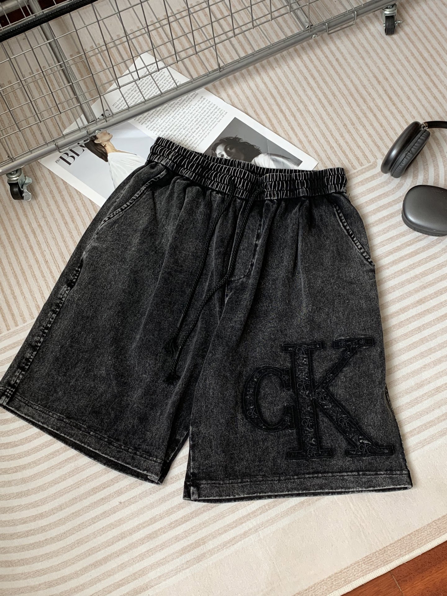 Calvin Klein CK美式重工炒洗做旧五分裤高街短裤