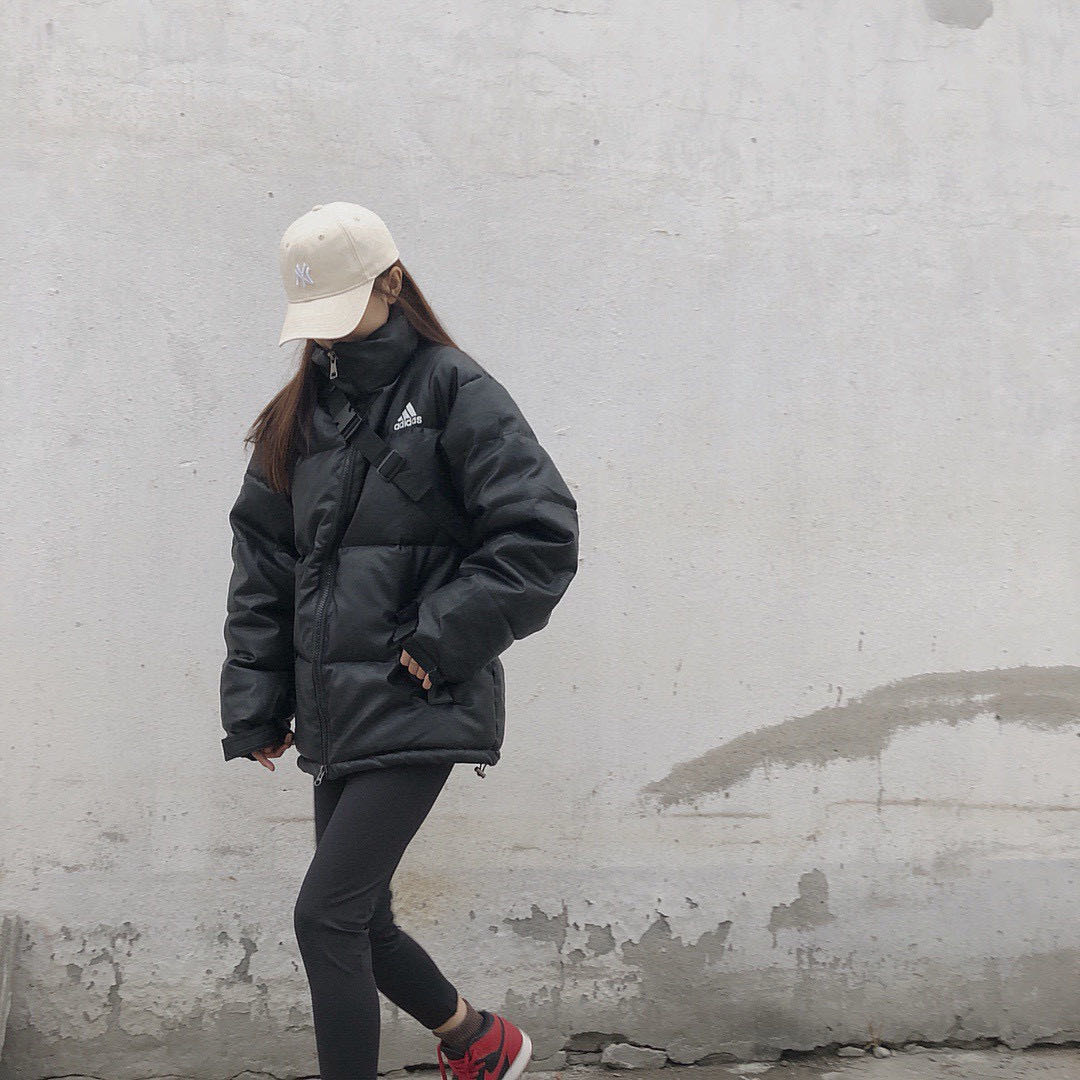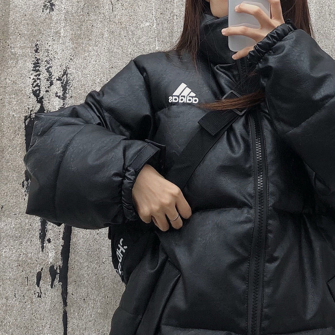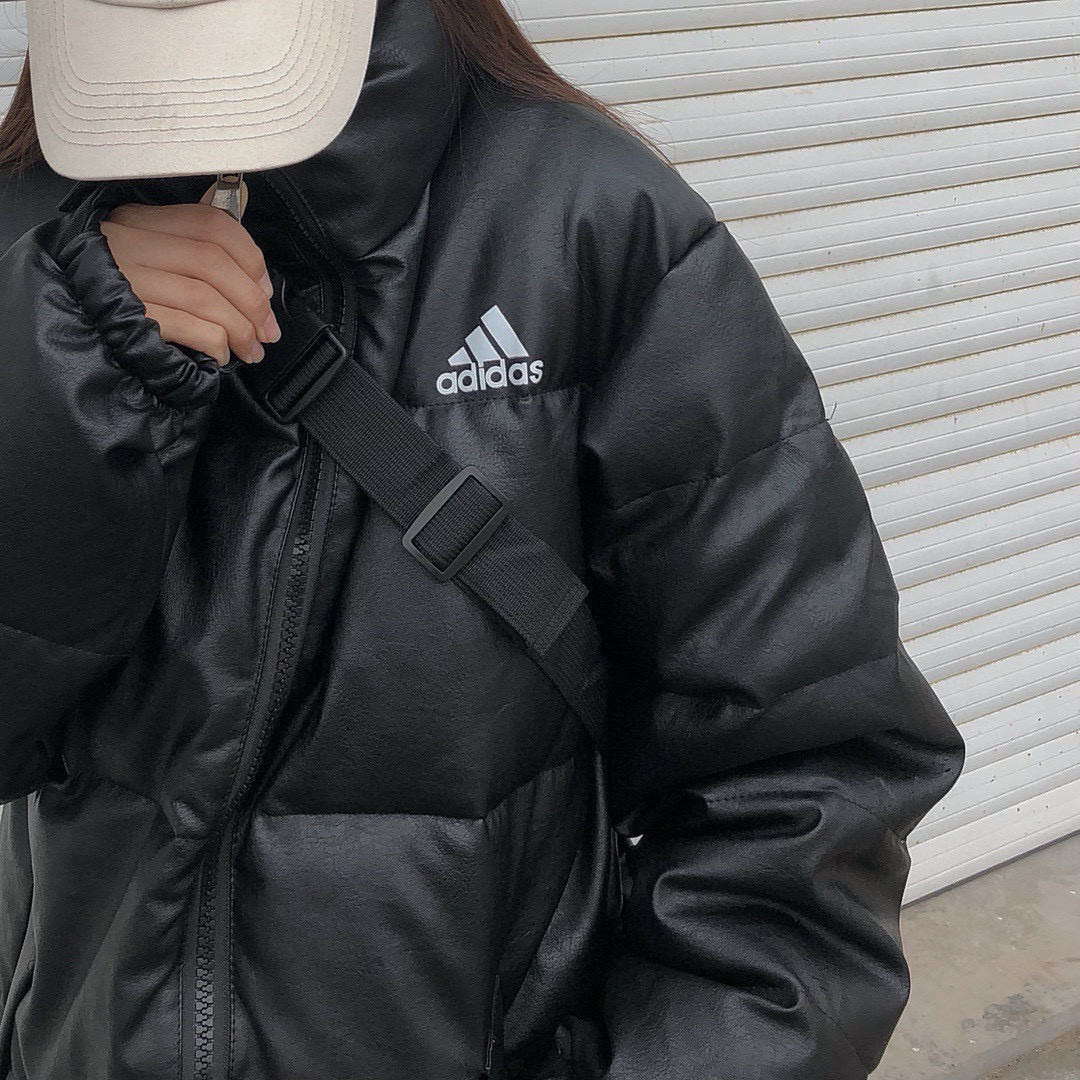Adidas阿迪达斯美版环保PU皮羽绒棉服棉衣外套 超经典款