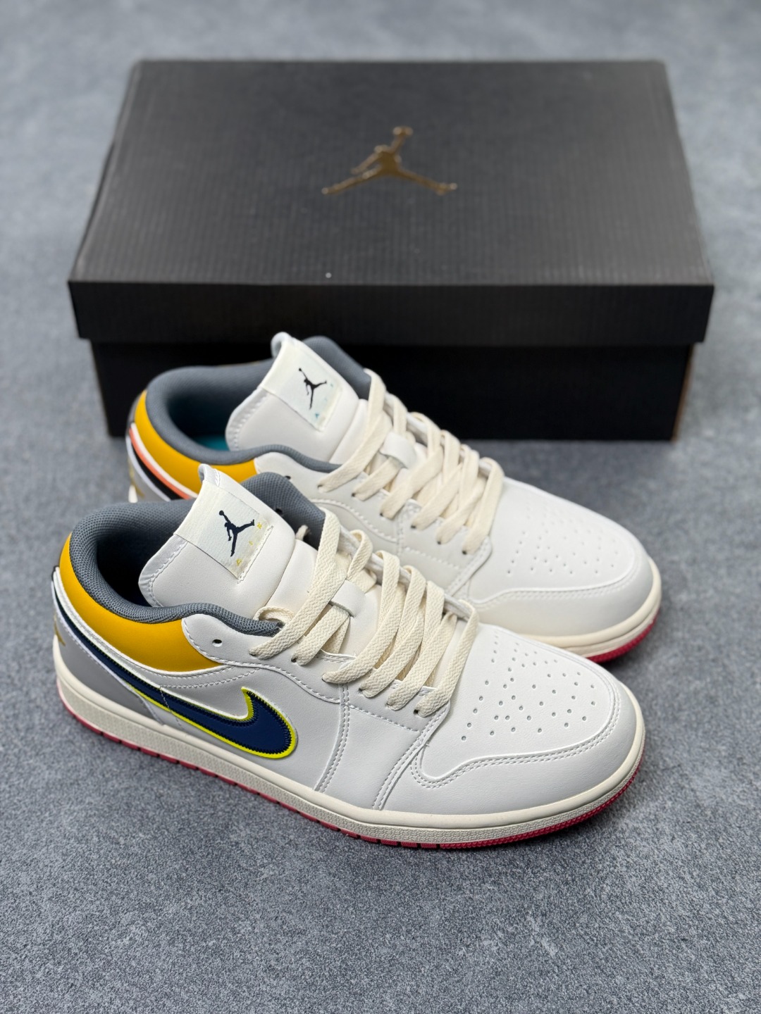 设计灵感 Air Jordan 1 Low于1985年首次推出 其设计灵感源自元年款Air Jordan 1 保留了经典的外观和标志性元素 如鞋舌上的飞人标志 后跟的飞翼标志等 具有浓厚的复古风格