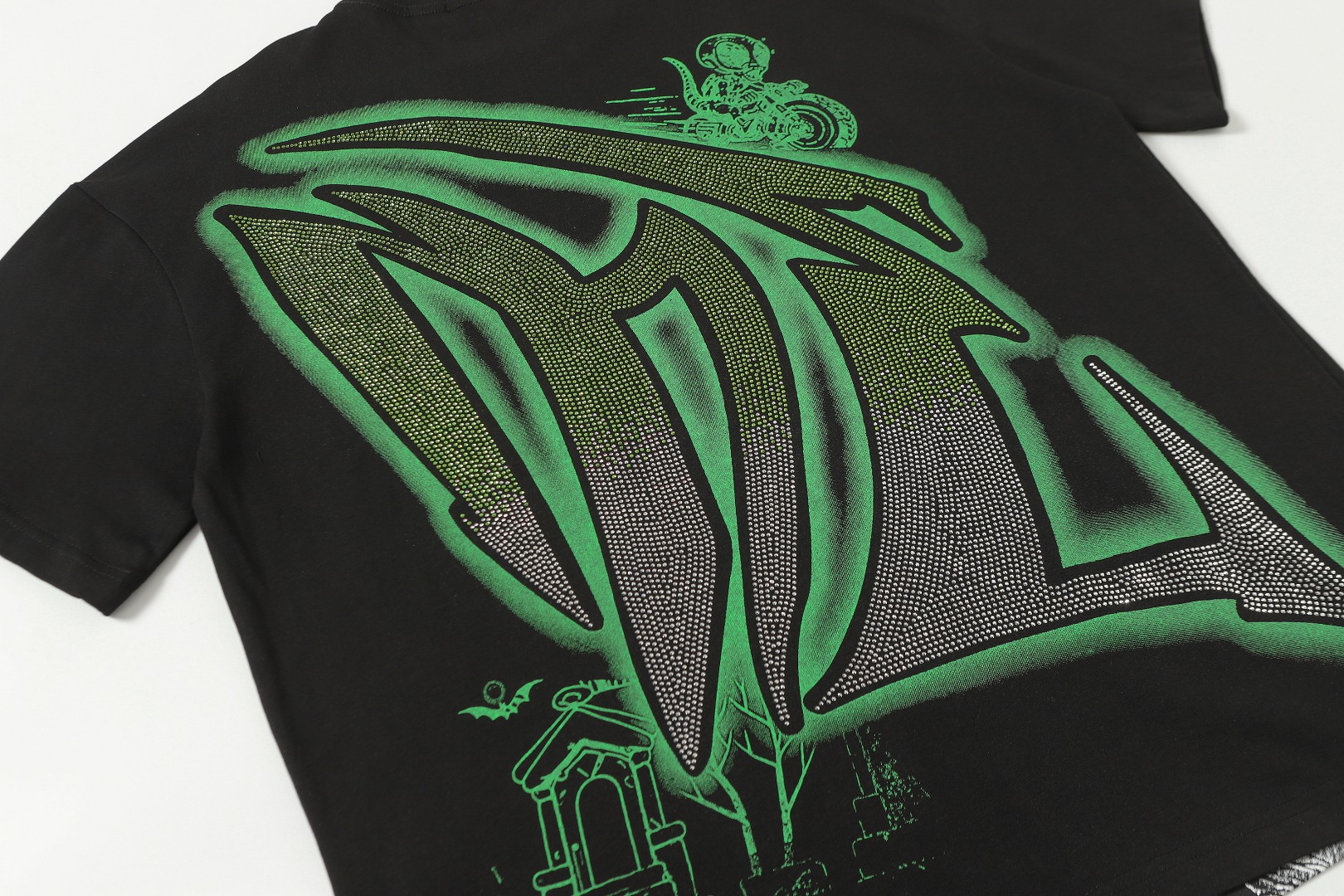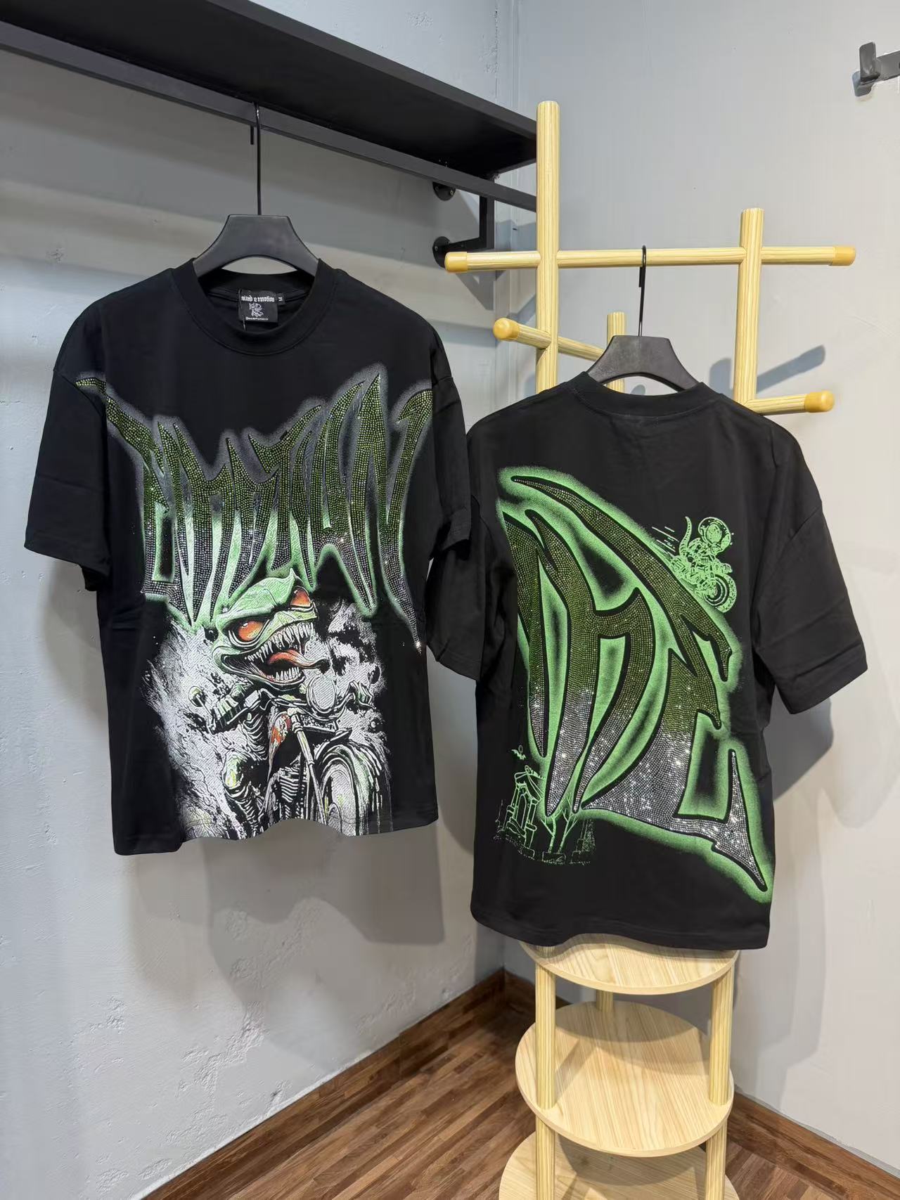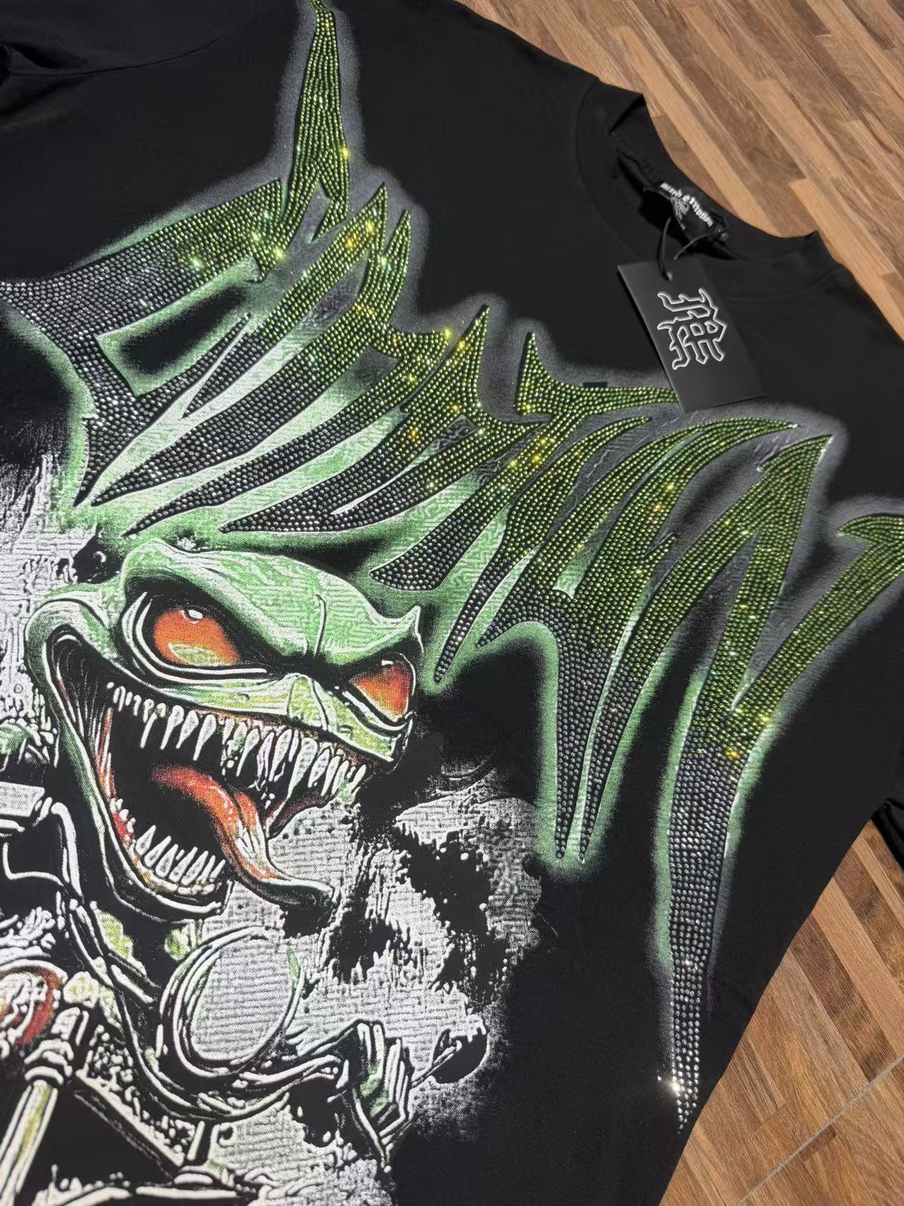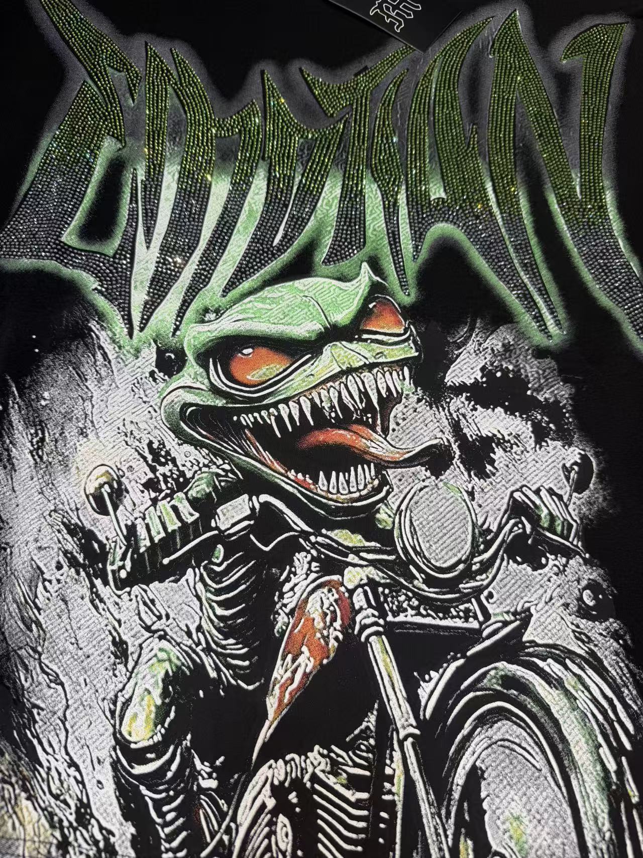 活性黑色 MIXED EMOTION 现货实拍 美式潮牌宽松休闲T恤 面料 fabric 32支270 克重精梳双纱纯棉 码数 size S M L X L 工艺 高清印花 烫压 中东进口A钻 颜色 colour 活性黑色