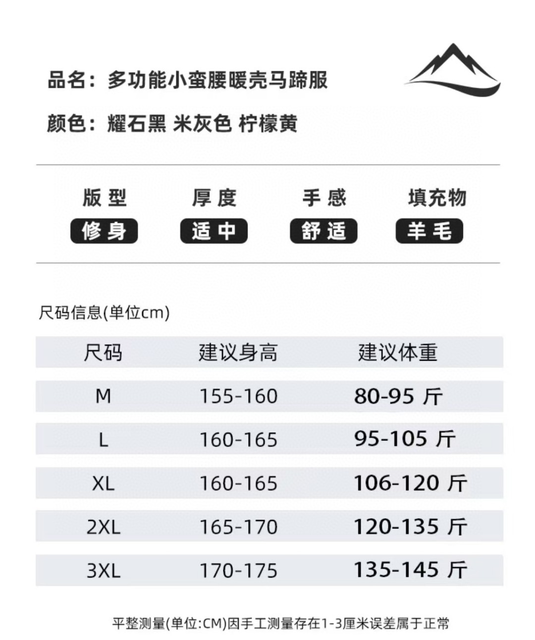多功能小蛮腰暖壳户外马蹄服系列 羊毛内里 防风防水防污