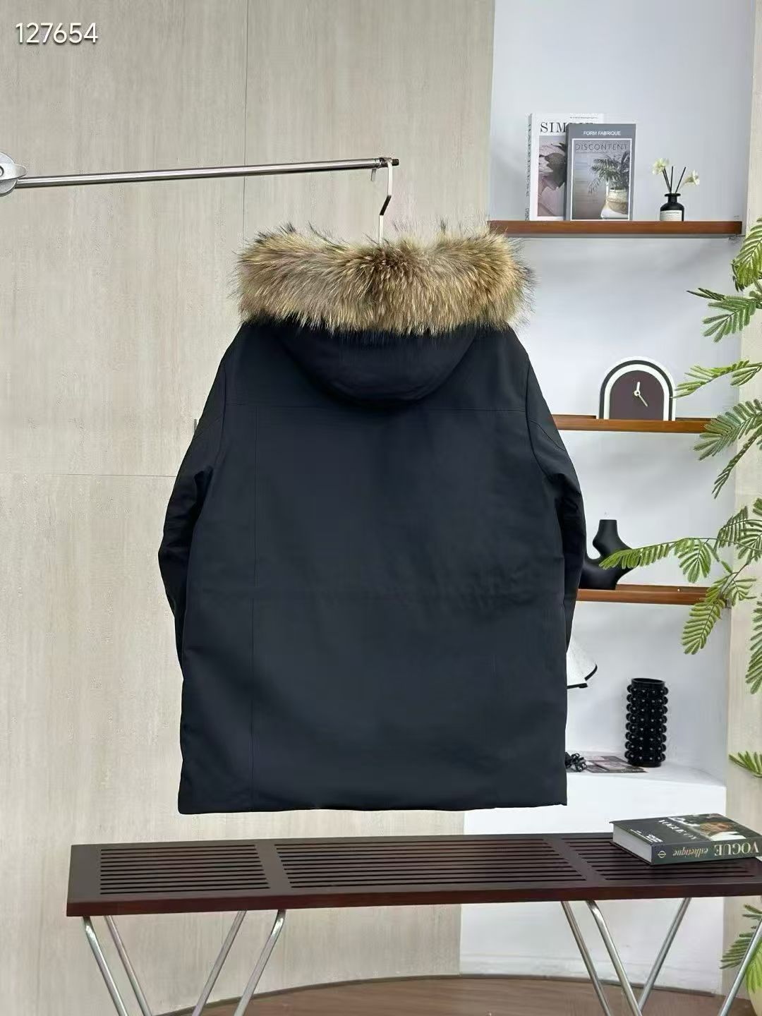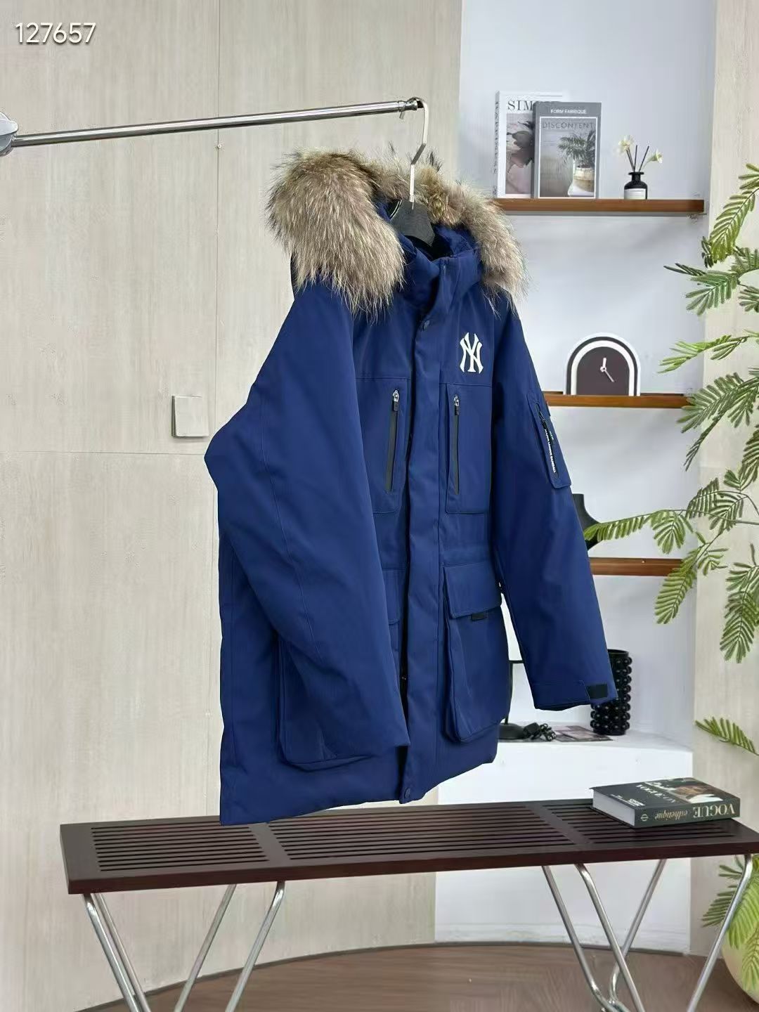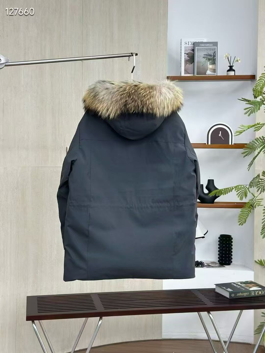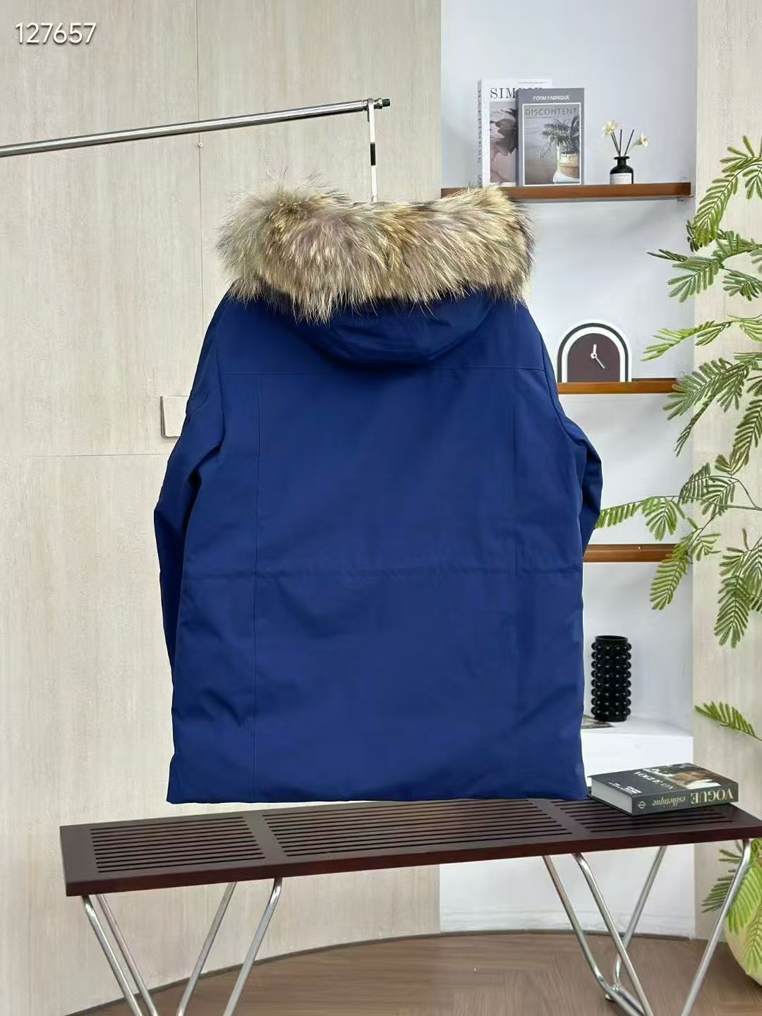 填充国标600蓬90白鹅绒 打开后挂起来拍打一下 静待毛领和衣服舒展蓬起来