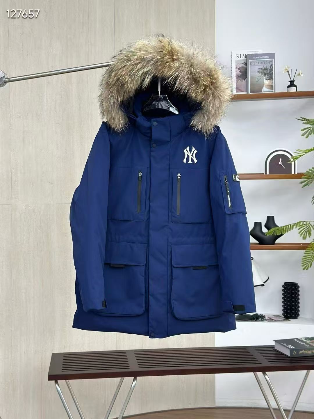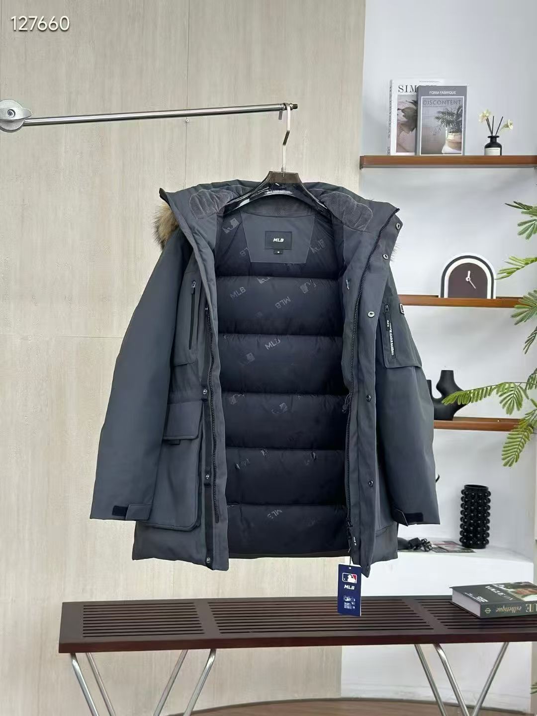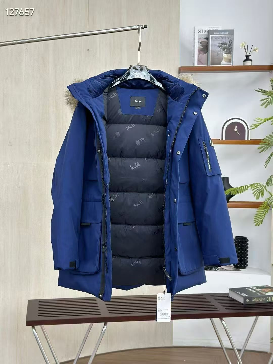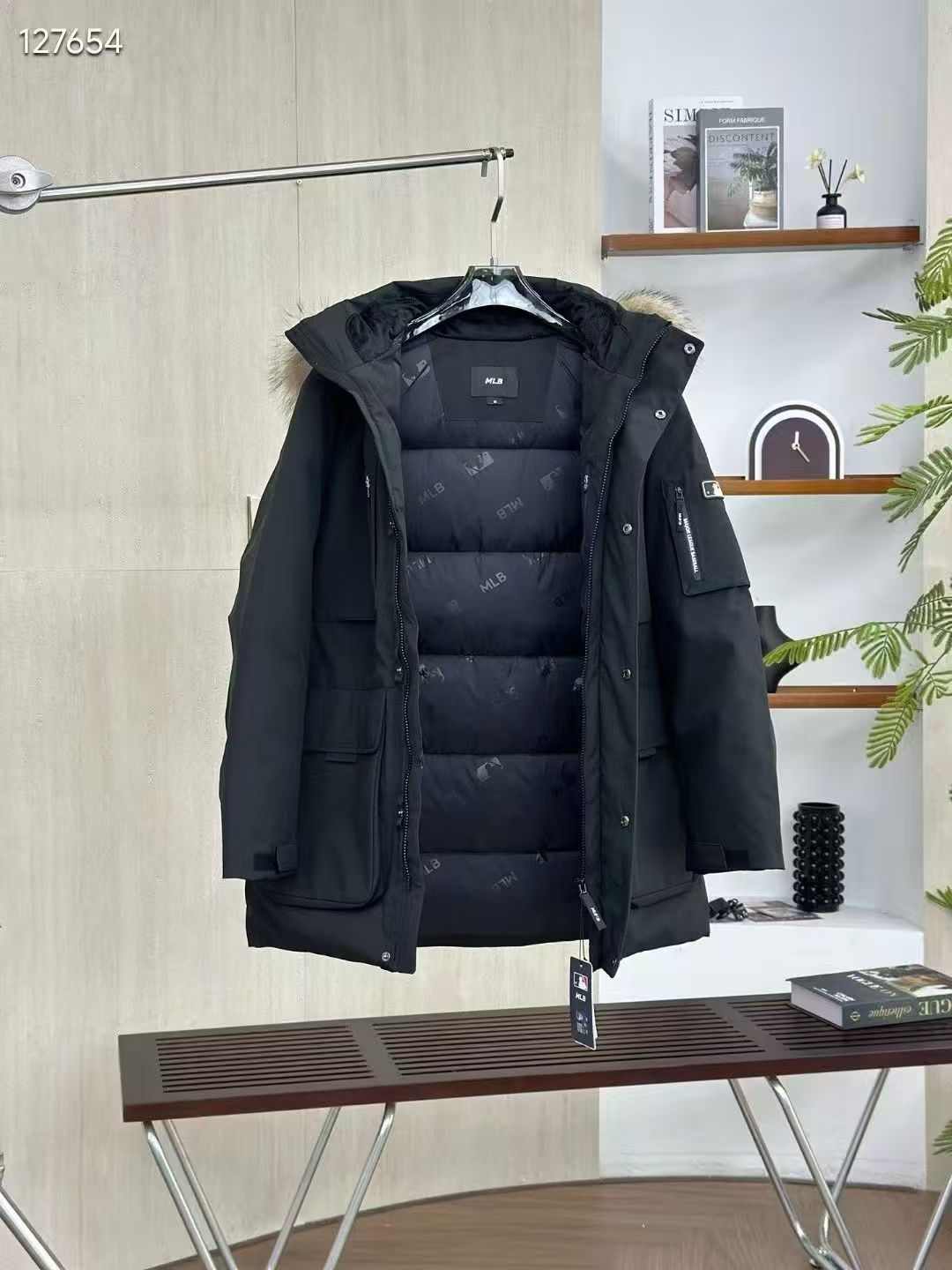 填充国标600蓬90白鹅绒 打开后挂起来拍打一下 静待毛领和衣服舒展蓬起来