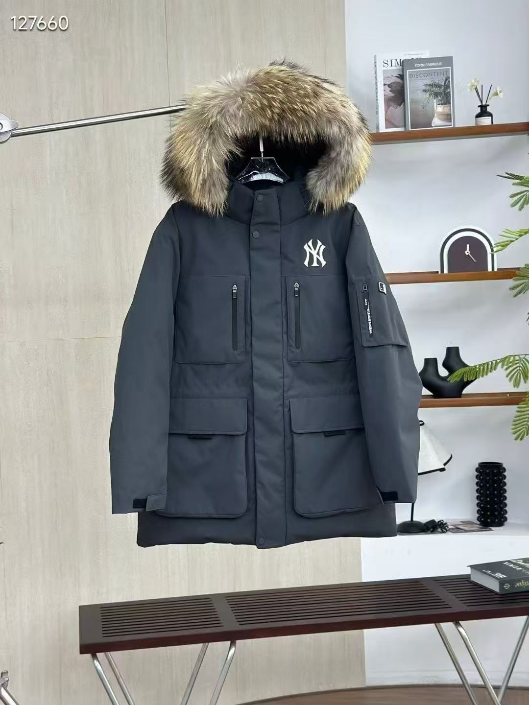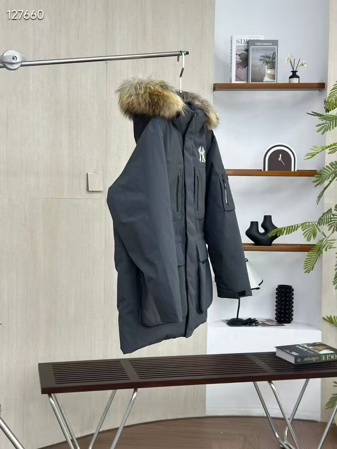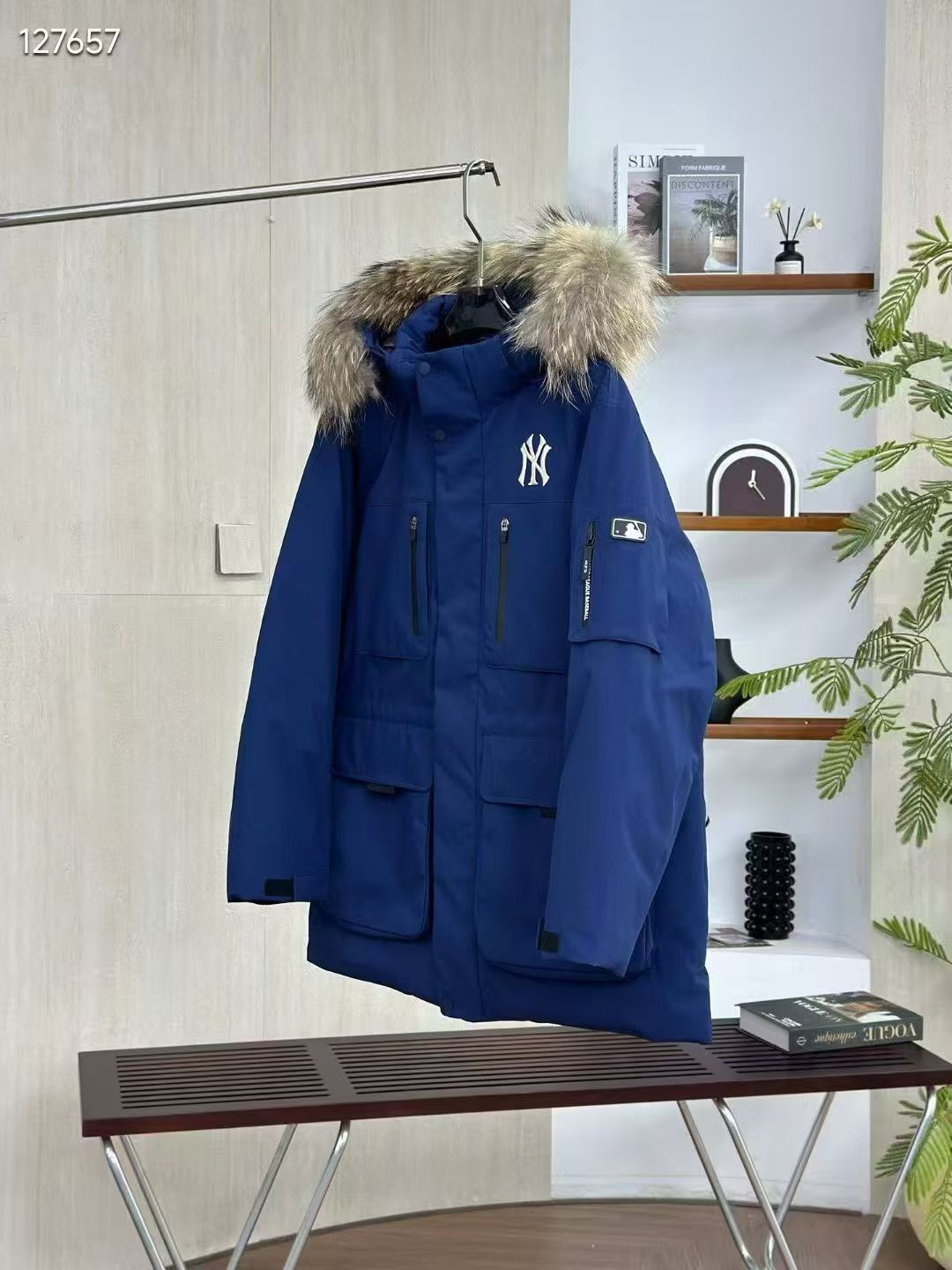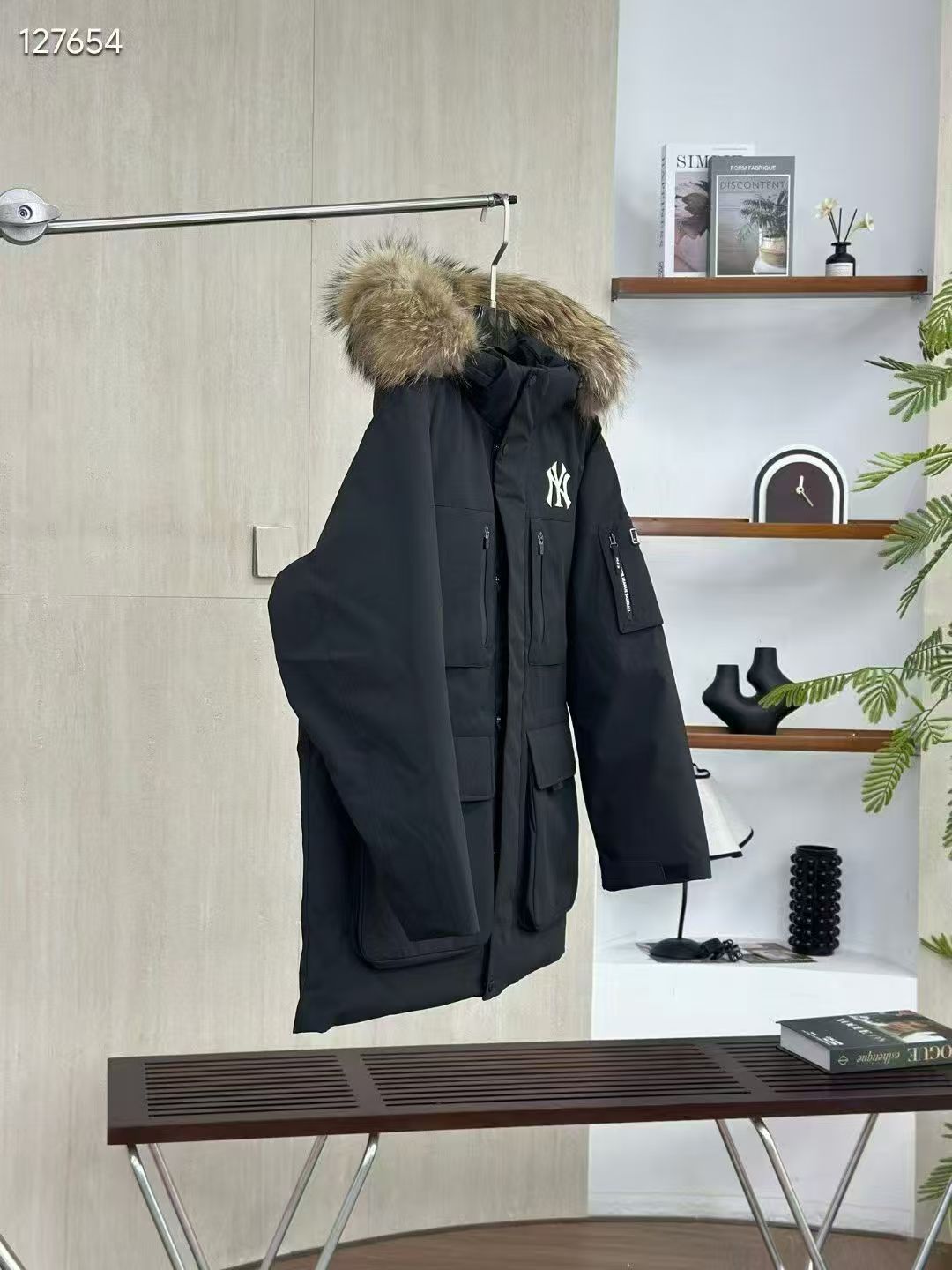填充国标600蓬90白鹅绒 打开后挂起来拍打一下 静待毛领和衣服舒展蓬起来