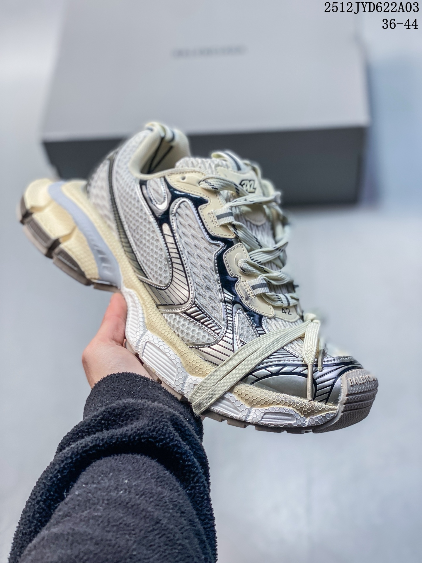 真标Balenciaga巴黎世家 3XL 平底系带 低帮复古老爹鞋 官方全套配件鞋盒 鞋带 防尘纸配套齐全 货号 734734 W3XL5 9645 尺码 36 44 ID JFD170 DZZ 12JYD622A03