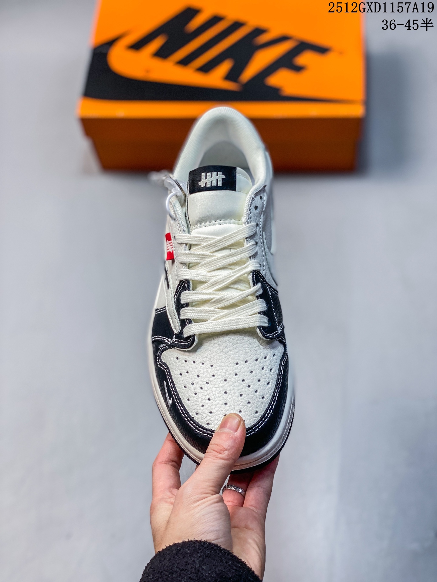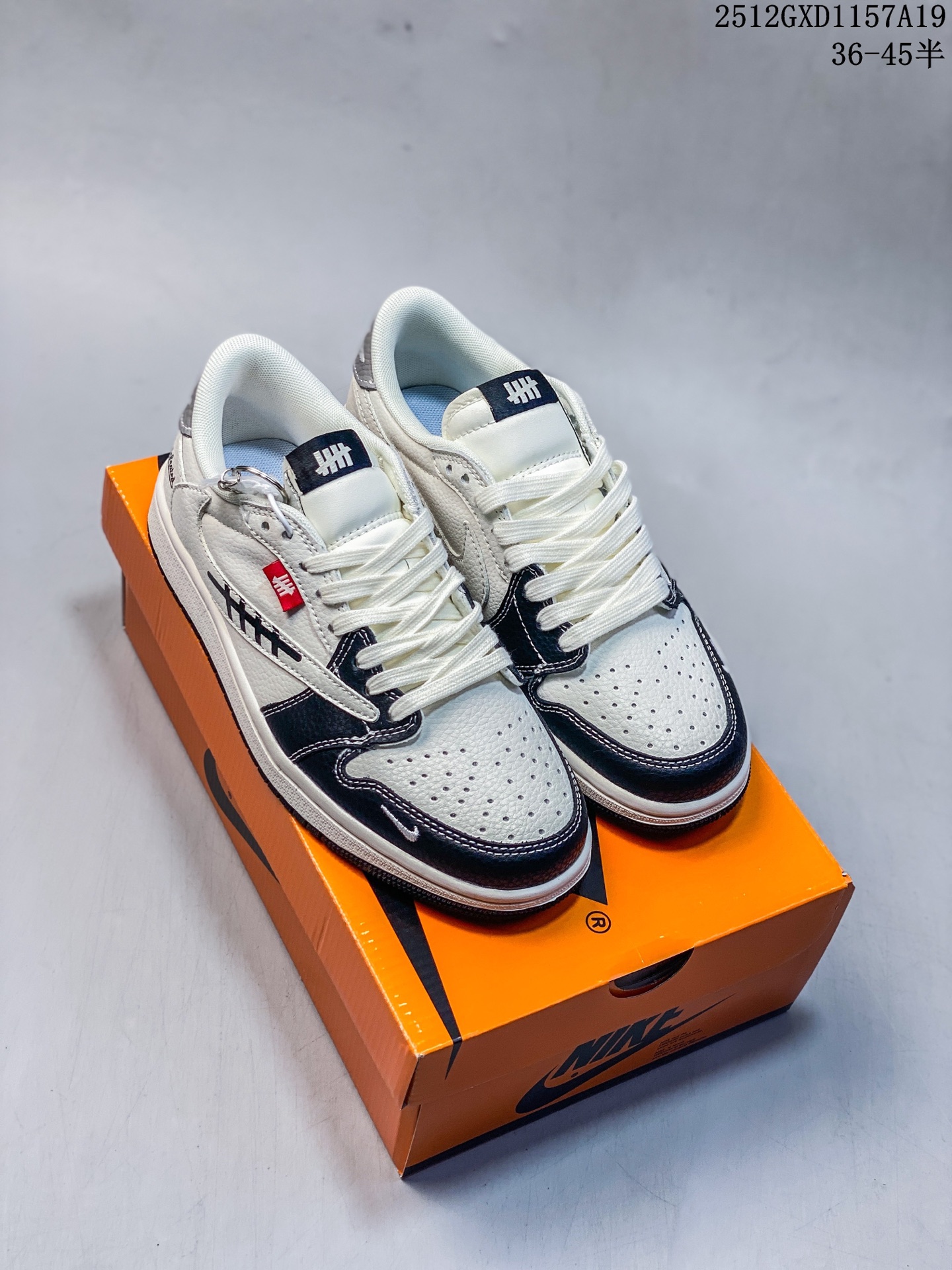 海外爆款限量发售 Nike Jordan Air Jordan倒勾 UN联名 米黑灰拼接 高端定制 低帮 复古 减震 防滑 耐磨 篮球鞋 定制鞋盒 大厂纯原品质出货 超高清洁度 皮料切割干净无任何毛边 细节完美