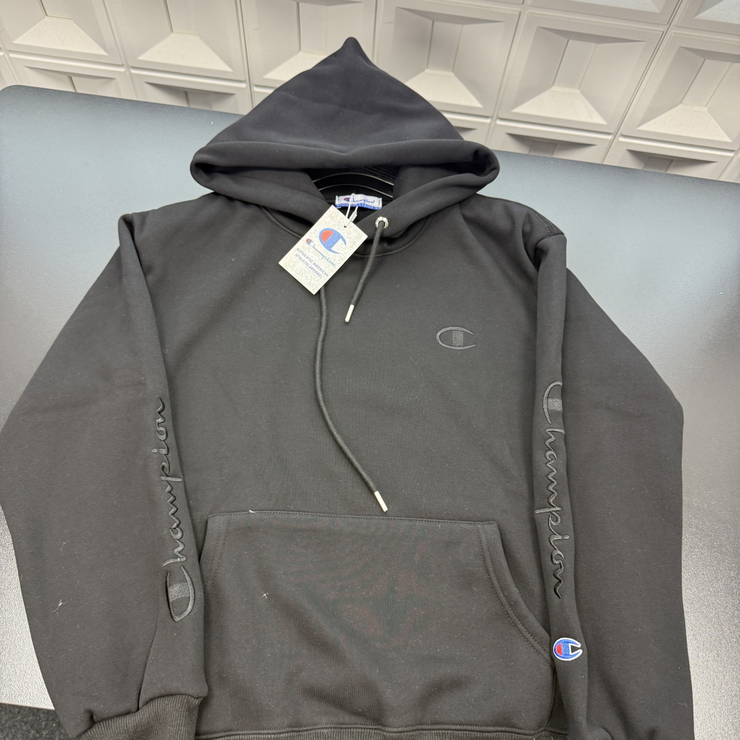 冬季热销爆款网红博主推荐款冠军加绒连帽卫衣 胸前刺绣小标 袖子刺绣字母麒麟臂 三标齐全官网一致 放大看细节原相机实物拍摄 颜色 黑色 尺码 L 4xl L 80 105斤 XL 105 120斤 2XL 120 140斤 3XL 140 160斤 4XL 160 180斤