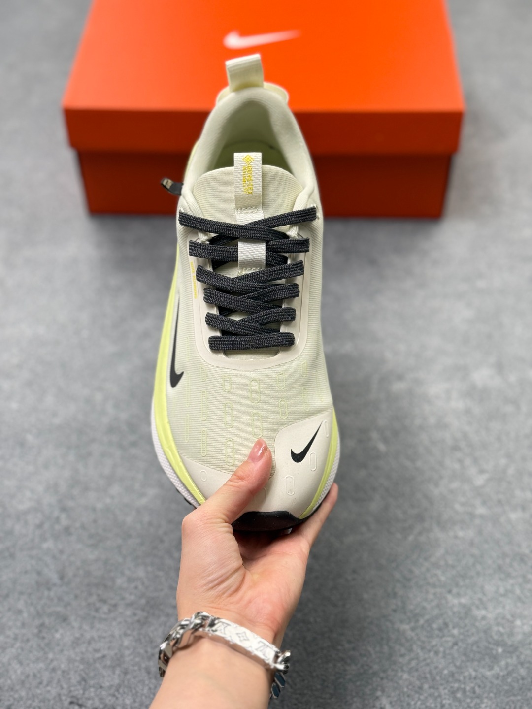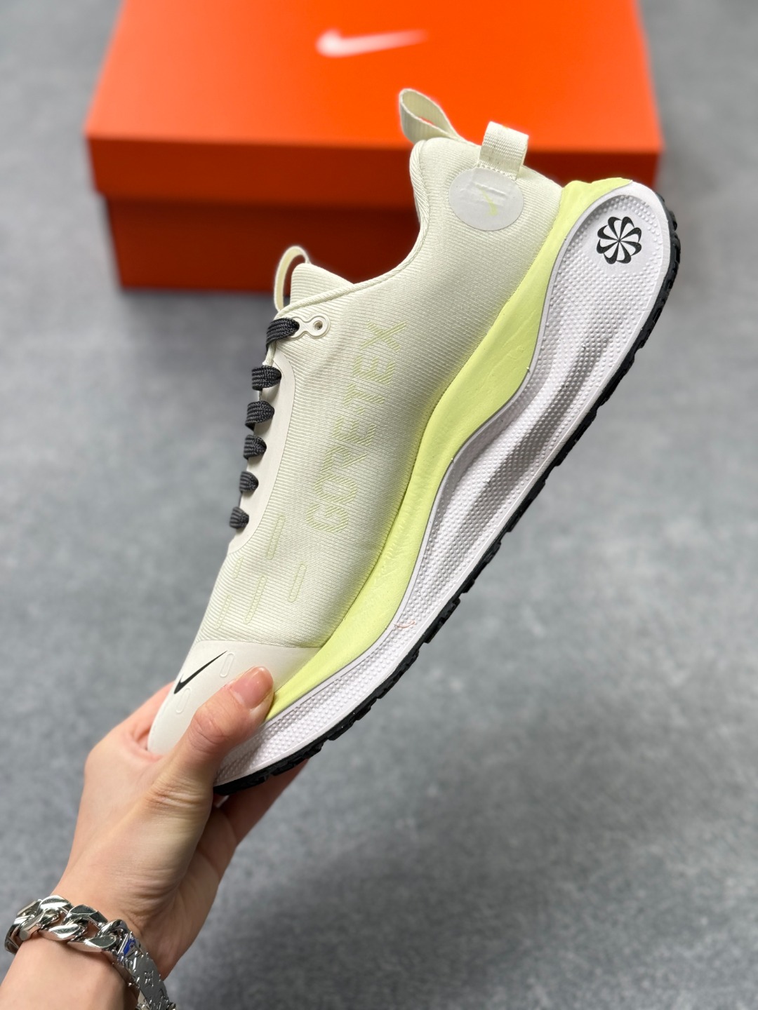 细节设计 采用Flyknit材质鞋面 结合Gore Tex防水材质 既保证了鞋子的轻盈感 又具备良好的防水性能 同时 鞋身可能带有反光细节 提升在低光照环境下的可见度