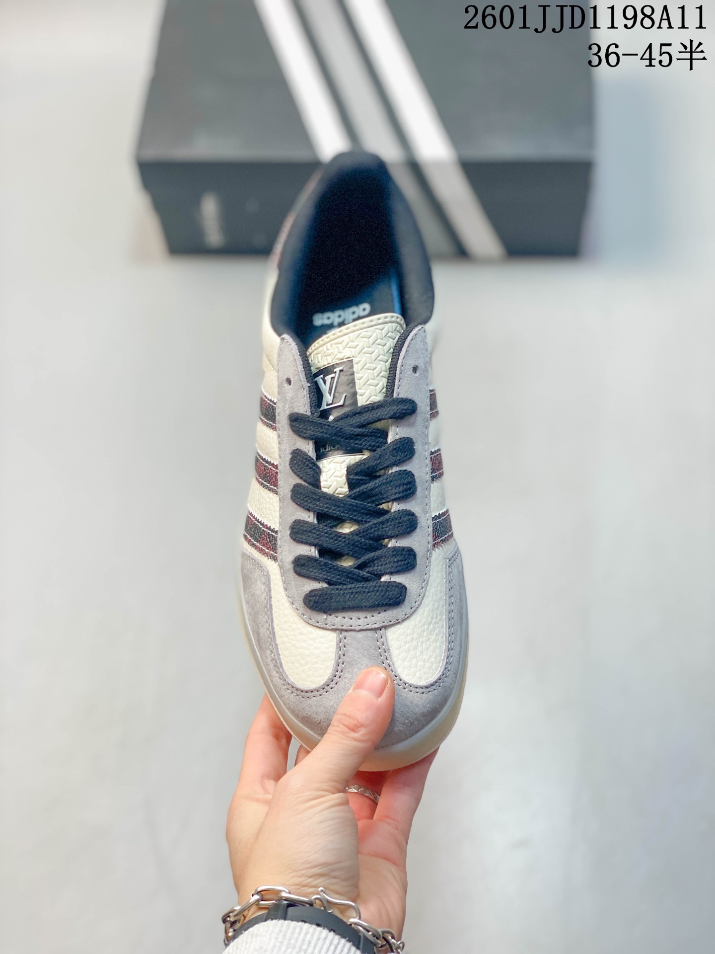 公司级adidas originals GAZELLE INDOOR Indoor LV T头鞋 LV联名 防滑耐磨轻便 低帮 板鞋 男女同款 白棕