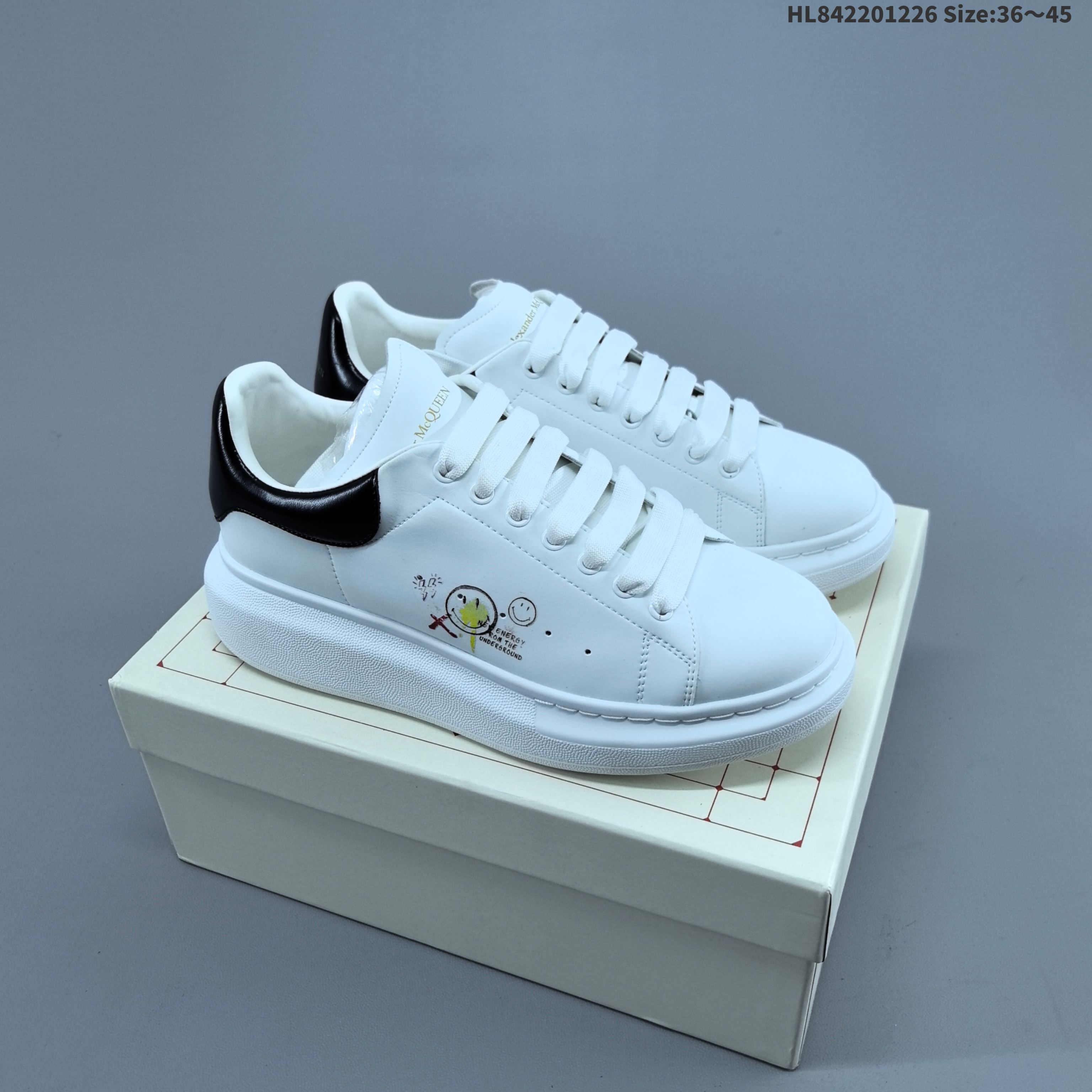 公司级意大利高奢品牌Alexander McQueen亚历山大 麦昆 Sole Leather Sneakers低帮时装厚底休闲运动小白鞋