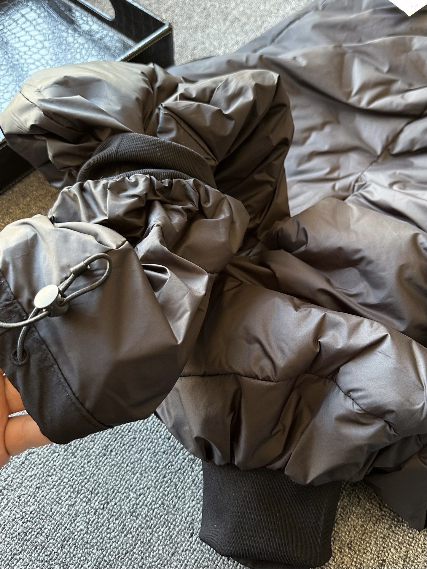细节细节再细节 Prada商场新款内束脚口外直口工装羽绒裤 裤前进口TPU激光雕刻Prada小仆人公文包logo 摸起来带有3D立体质感 十分精致 双侧工装大口袋设计 膝盖处做了双叠层设计 增强立体时尚感的同时更具有实用性 下摆扣做了防风抽绳设计 全开和收紧两种穿搭方式更能满足不同场景的穿衣效果