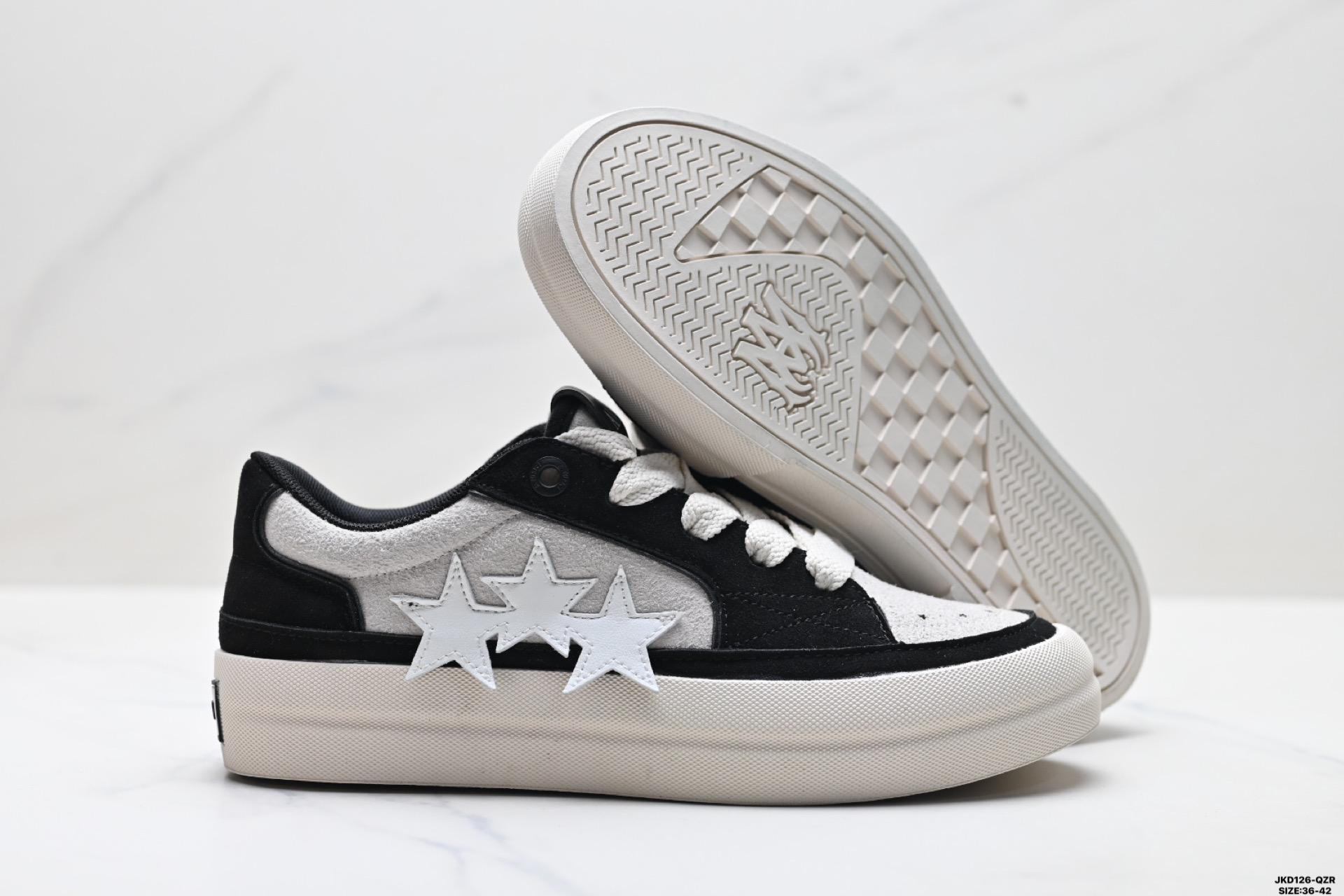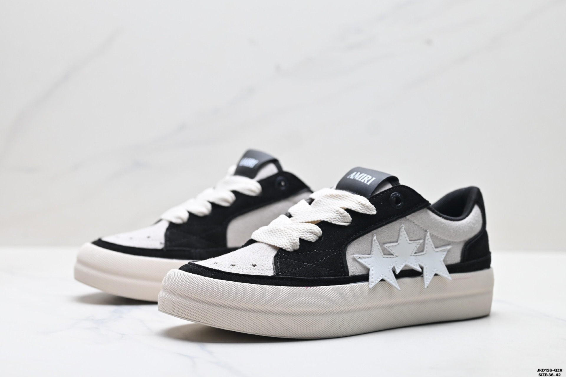 真标埃米AMIR爆款情侣星星鞋真皮休闲运动男鞋五角星拼色系带板鞋女鞋