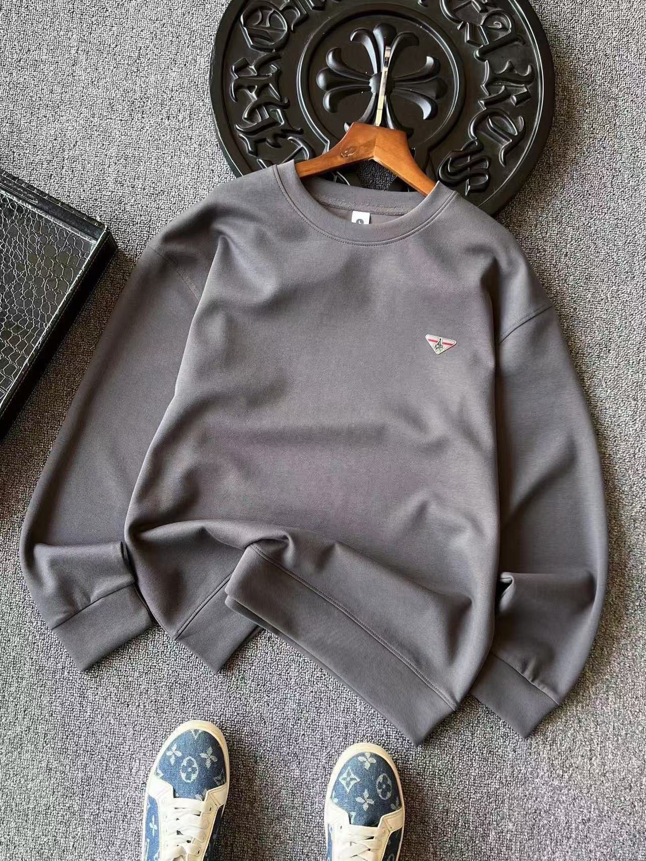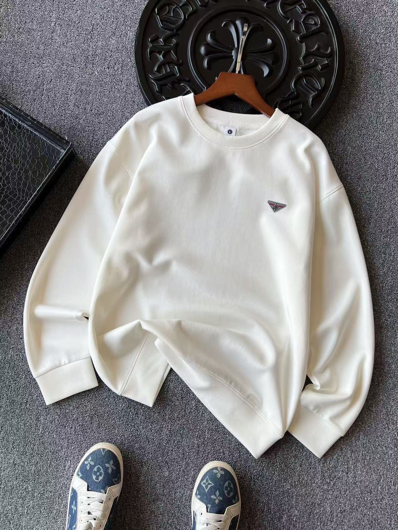 细节细节再细节 Prada小仆人公文包专柜新品高奢圆领卫衣 全身精致简约 纯正牛奶白 黑色 水泥灰 摩卡色 胸前采用进口TPU金属拉丝倒三角内里镶嵌小仆人公文包标识 灰红组合底色 精致感满满 所有拼接接缝处全部做了双针压线 精湛做工天花板