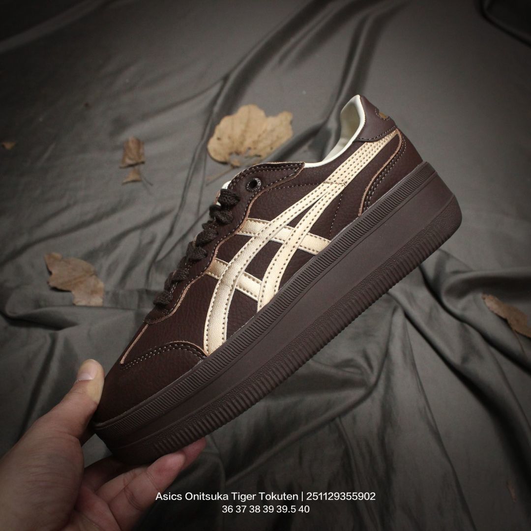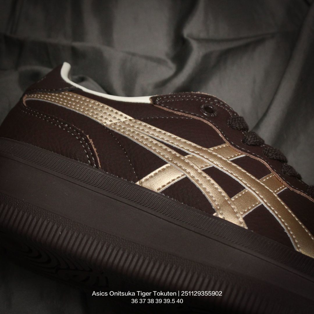 Asics 亚瑟士 男女鞋真标半码制 升级原楦原纸版开发 采用荔枝纹牛剖革鞋面材质 外置耐磨耐弯折RB大底鬼塚虎新款德训鞋 鬼塚虎新款德训鞋 日产经典老牌 鬼塚虎 Onitsuka Tiger Tokuten 得分系列低帮厚底复古德训风休闲运动板鞋