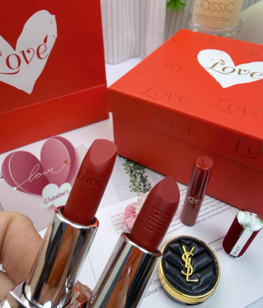 每一件单品都带原装礼盒 细节控狂喜 再配上同款红色手提袋 拎出门直接是情人节街上最体面的崽