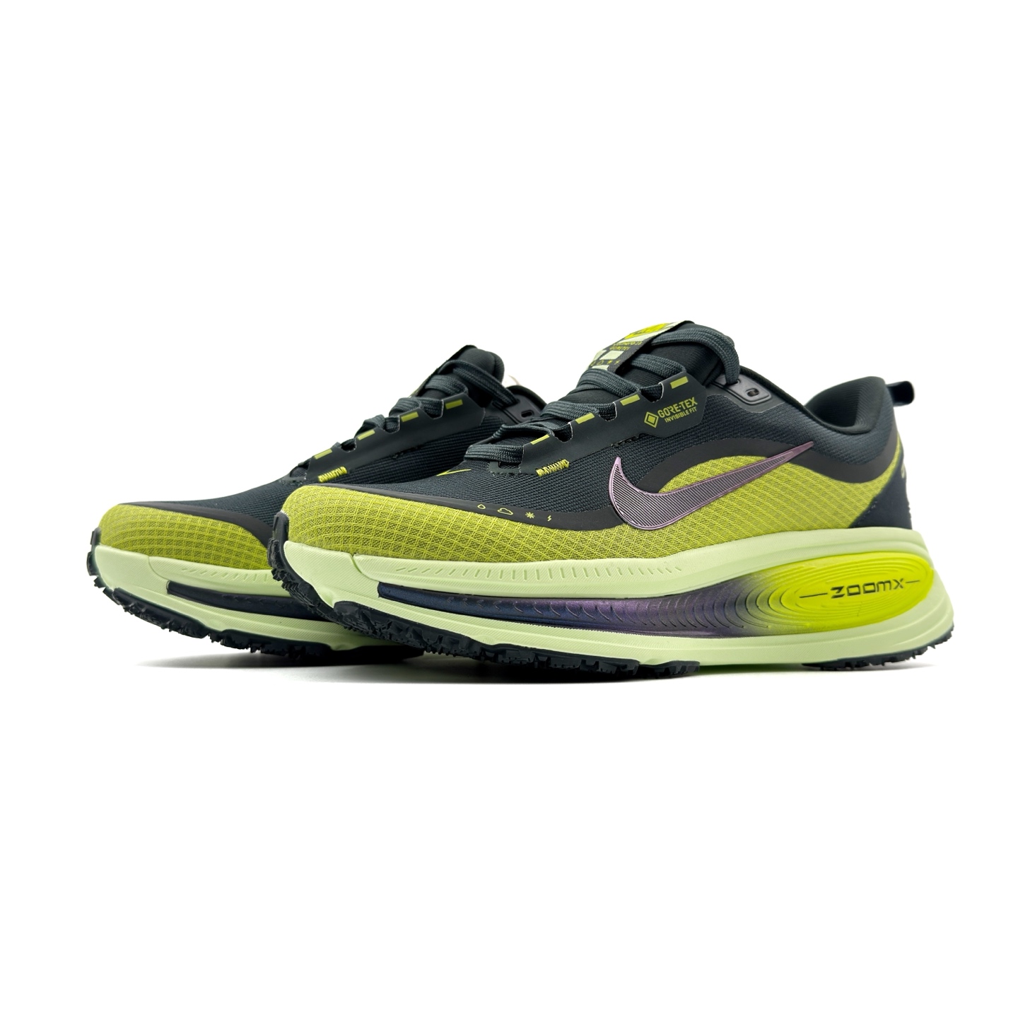 Nike VOMERO 18 GTX 舒适减震防滑 低帮跑步鞋 全掌ReactX泡绵中底 前掌和后跟还配备了Air Zoom气垫单元 据说跑起来更快更舒适哦 这次最大的升级点 首次引入了ReactX泡绵 货号 HQ7002 300 尺码 36 45