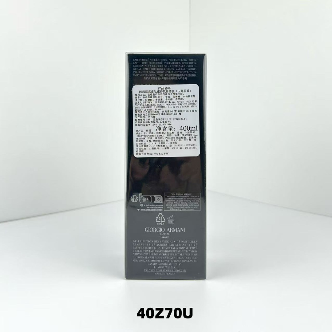 下单备注 阿玛尼玉龙茶身体乳 阿玛尼玉龙茶身体乳400ml40Z70U编码可配中文标 清透水润 悠远茶香 待机超长 快速吸收不黏腻 持续水润 无酒精配方对敏感肌友好 挥发的香气是香水的中后调 香味持久 大容量400ml 体乳 护手双重滋润 自用送礼首选