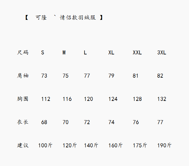 尺码 S 3xL