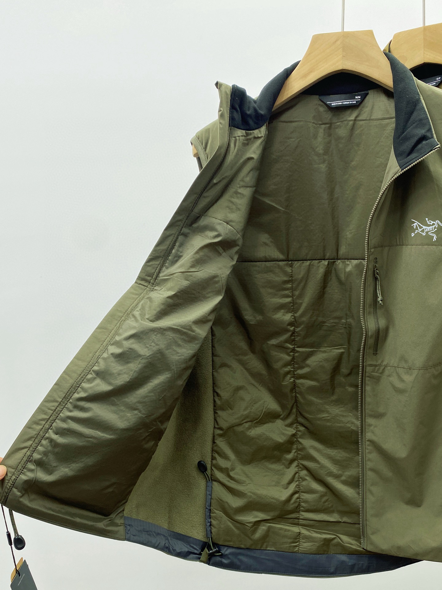 下摆设计压胶下摆两个下摆调节扣长下摆口袋设计内侧拉链胸袋