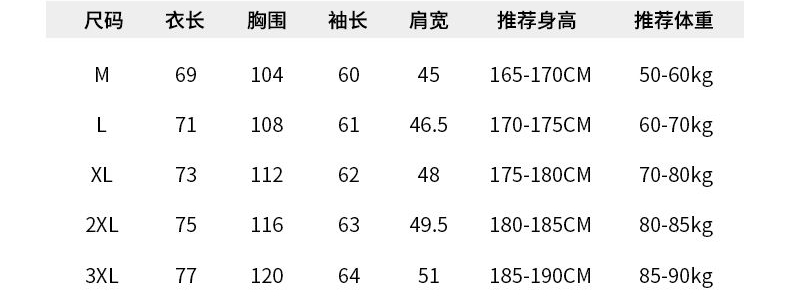 尺码 M 3XL