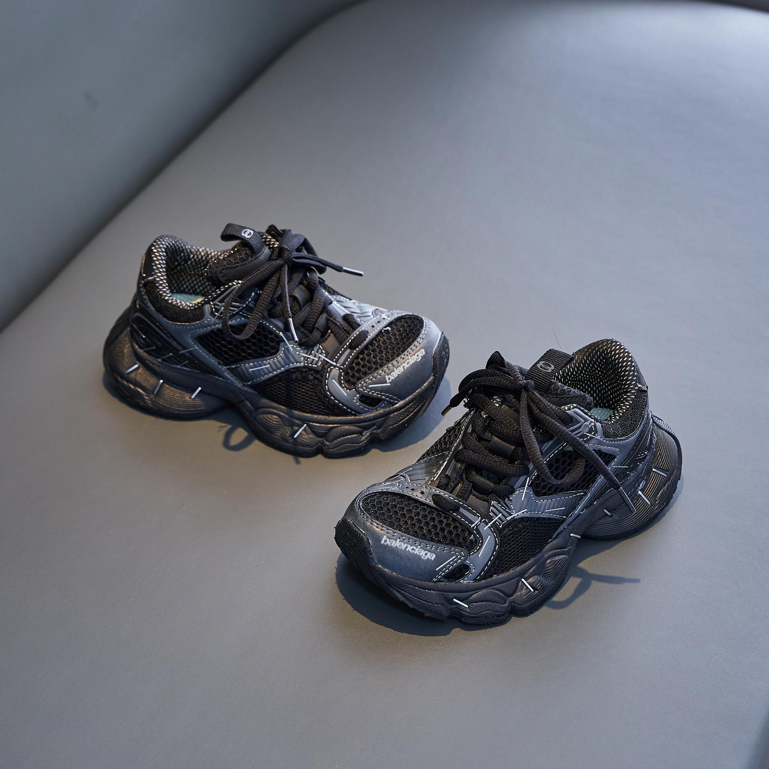 巴黎世家欧洲站走秀款厚底老爹鞋做旧脏脏鞋男女童百搭跑步鞋炸街童鞋