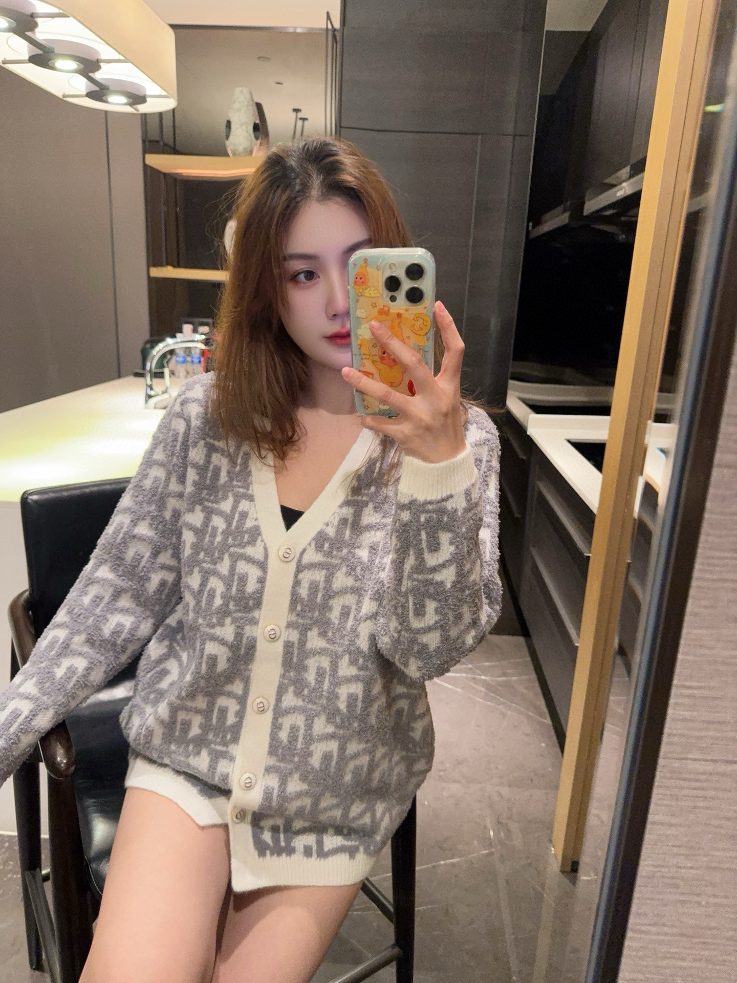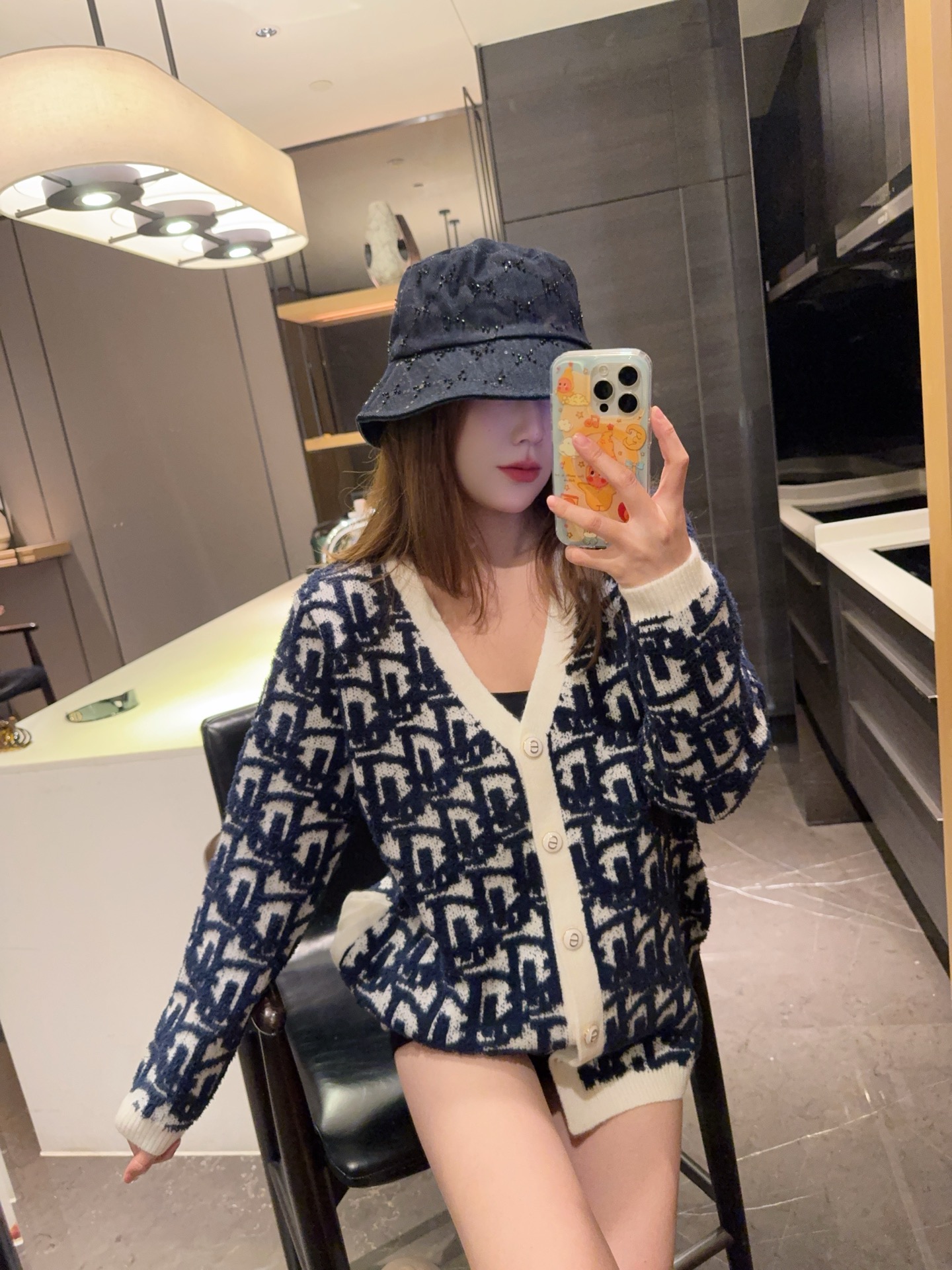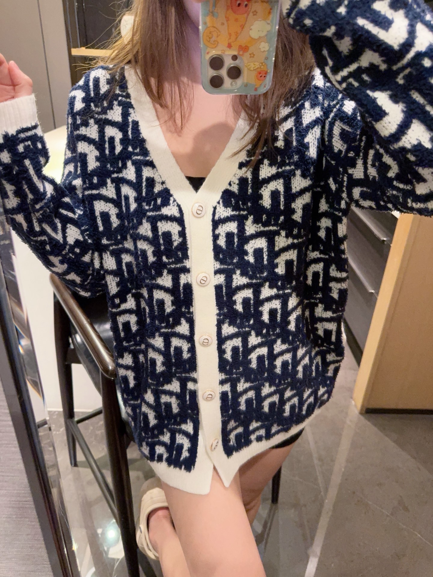 模特图 Dior 迪奥 2025新款经典满印立体提花针织开衫外套 V领 白色滚边 复古优雅感满满 满印立体提花 纹理超有层次 早秋穿搭首选 针织面料柔软舒适 保暖又透气 通勤休闲都能轻松驾驭 搭配高腰裤或裙装 温柔知性风get 尺码覆盖广 适合各种体型 是入秋必备百搭单品 颜色 蓝色 灰色 尺码 s m l