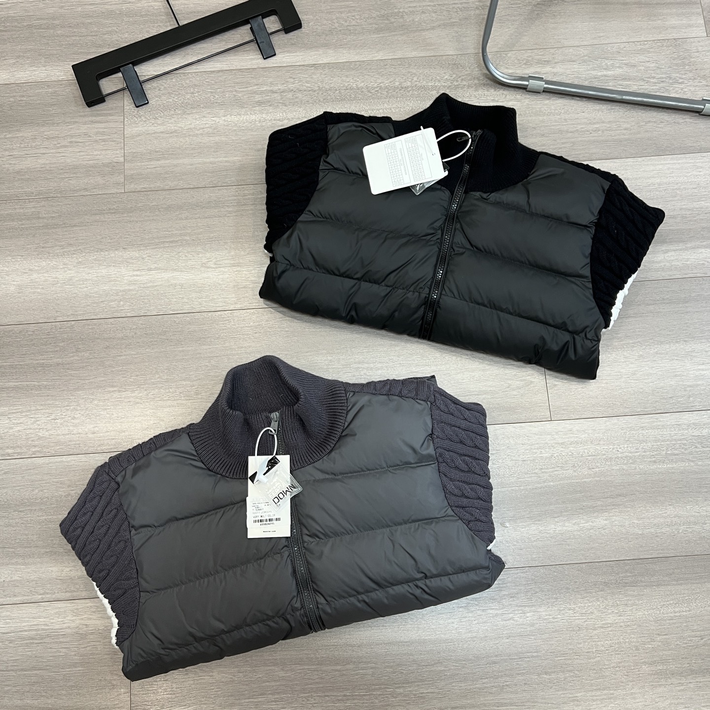 男女同款拼接针织绗缝羽绒立领夹克外套
