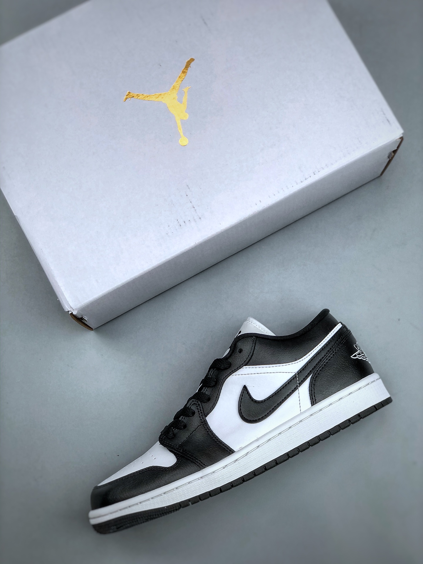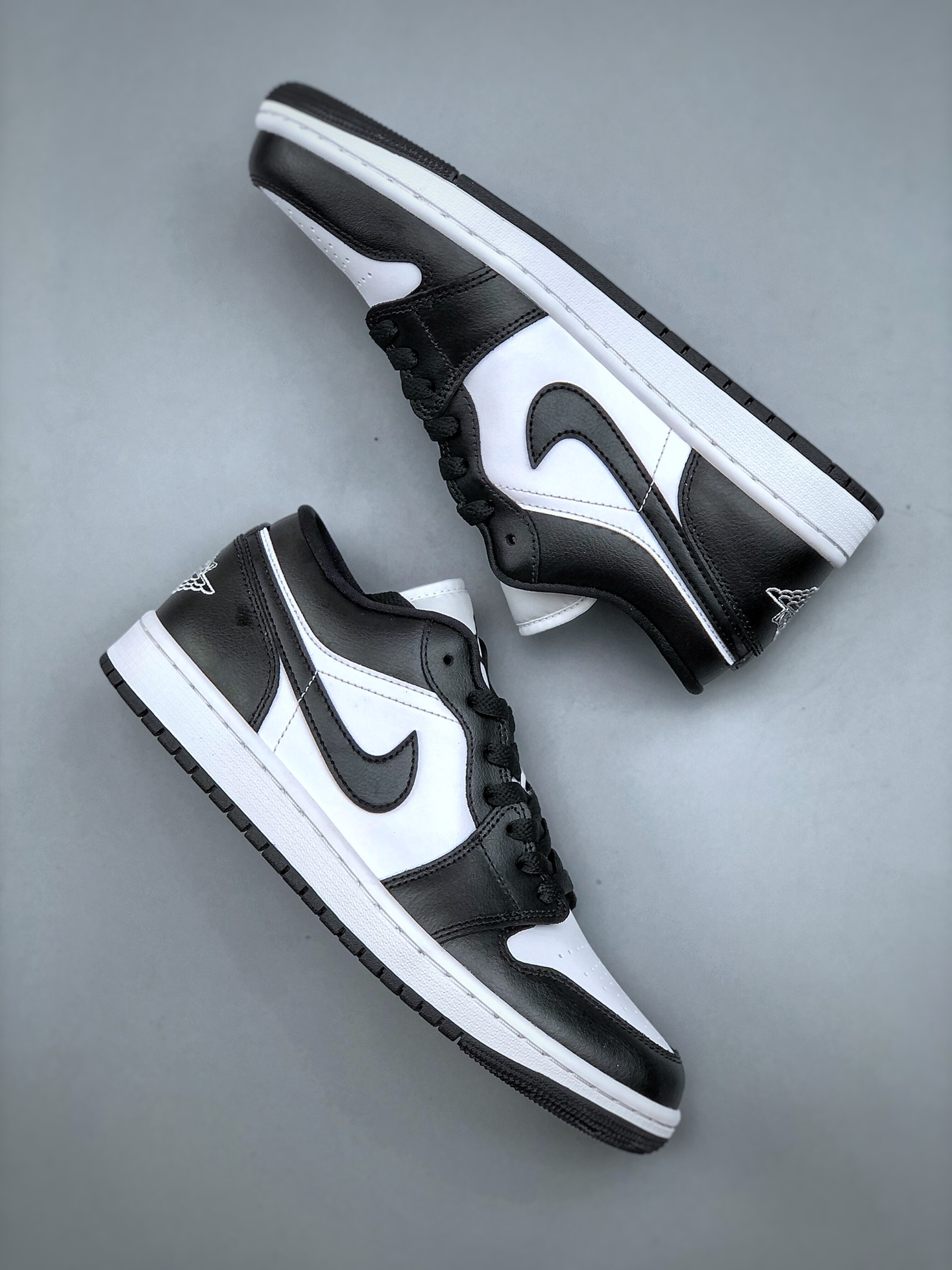 Nike Air Jordan 1 Panda 低帮 熊猫黑白 AJ1 乔丹1代 aj1 乔1 低邦 黑白 乔丹篮球鞋系列 鞋款采用纯白皮质面料打造鞋面 搭配黑色框架点缀 使鞋款呈现出经典的熊猫配色 鞋身两侧Swoosh Logo采用黑色打造 使鞋款更具层次感 黑色内衬搭配白色鞋舌上反色调的Jumpmman Logo作为点缀 后跟Wingst Logo也采用白色点缀 最后以白色中底搭配黑色橡胶外底完善设计