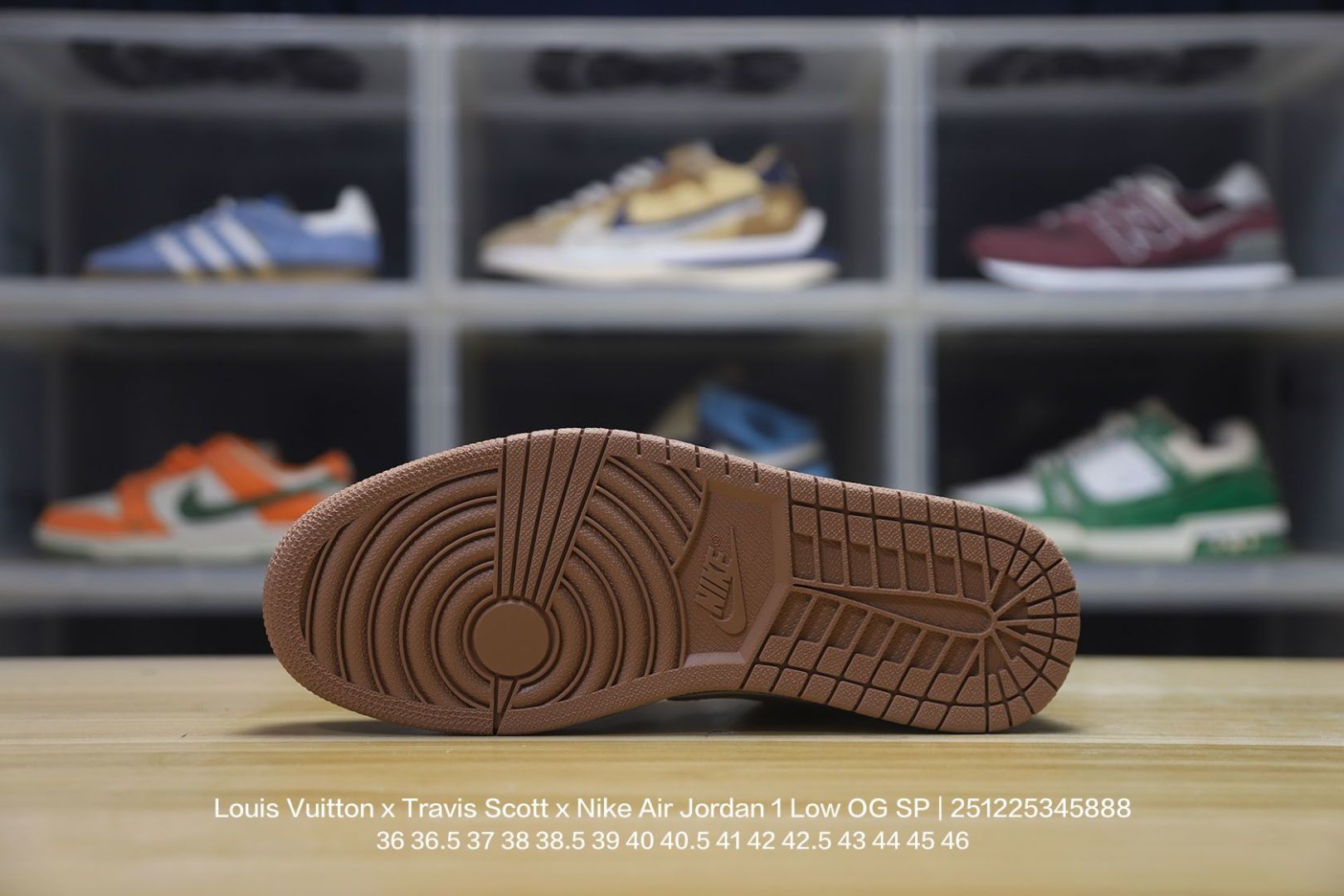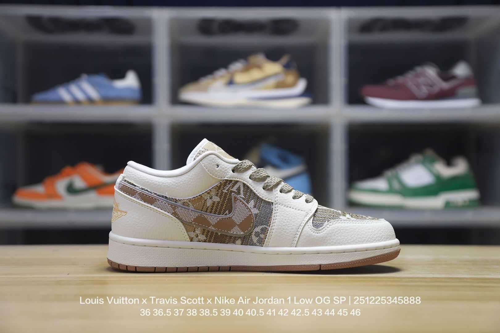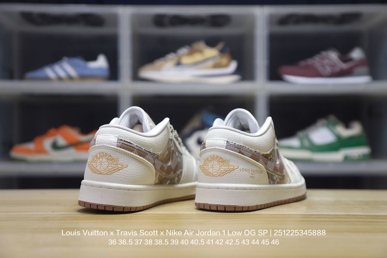 Jordan 乔丹 男女鞋真标半码制 采用软质荔枝纹牛剖革鞋面材质 缜密拉帮中底布 鞋垫嵌EVA缓震物料及背胶 内置气垫及耐磨橡胶大底联乘法国顶级高奢品牌 路易威登Louis Vuitton x Travis Scott x Nike Air Jordan 1 Low OG SP Wine Red Gold LV AJ1乔丹一代经典低帮文化百搭休闲运动篮球鞋