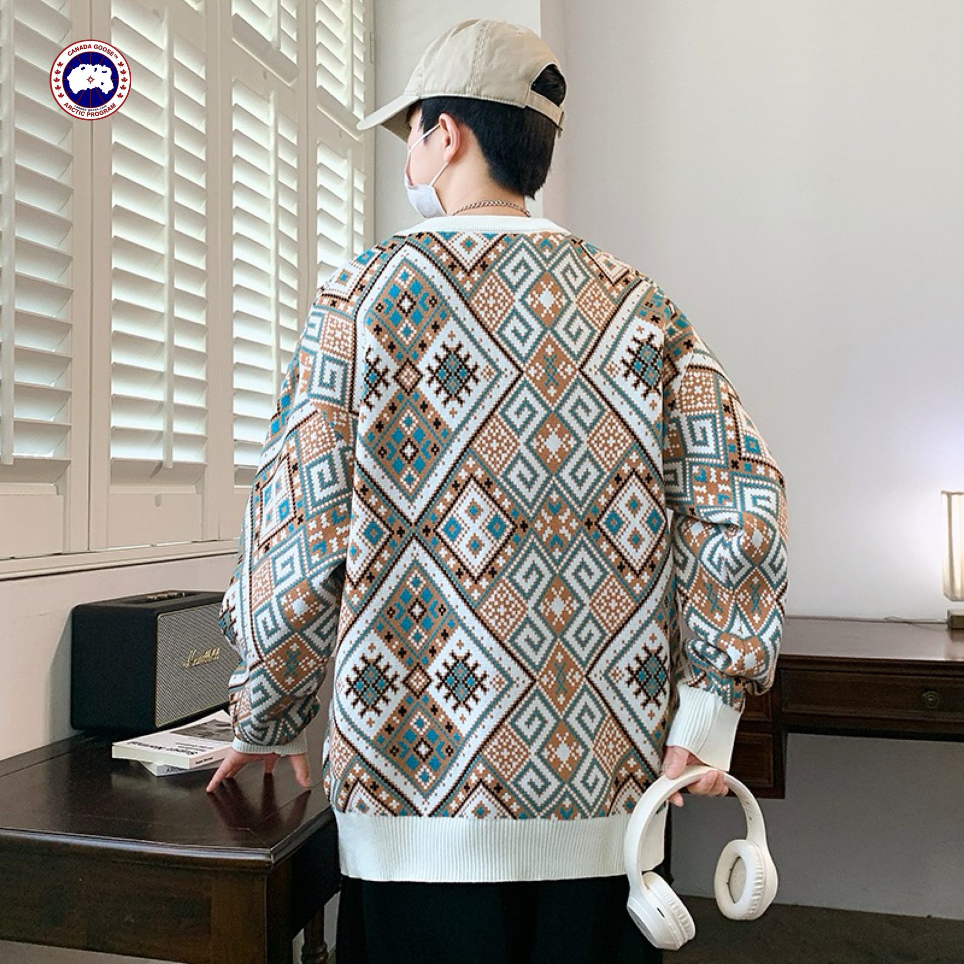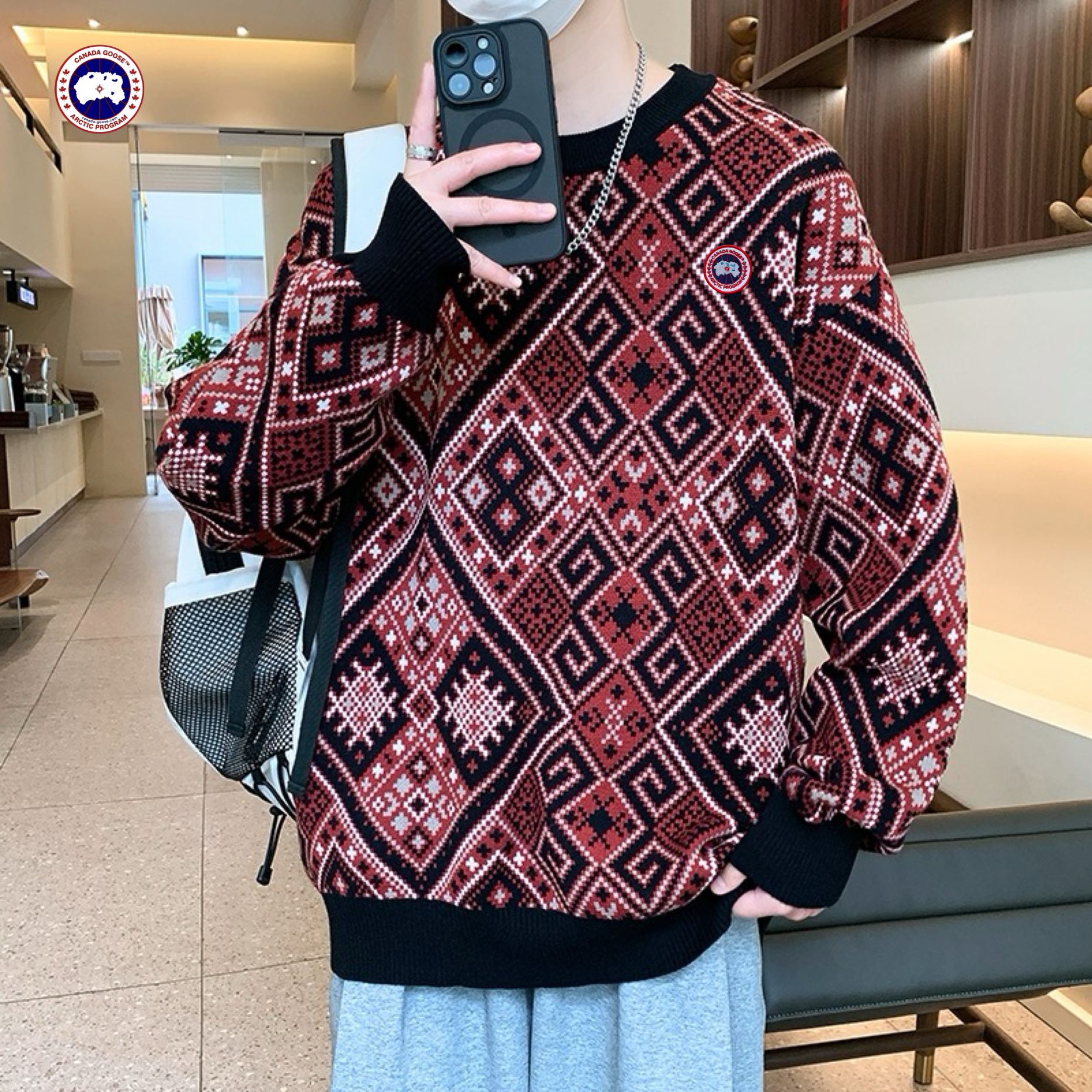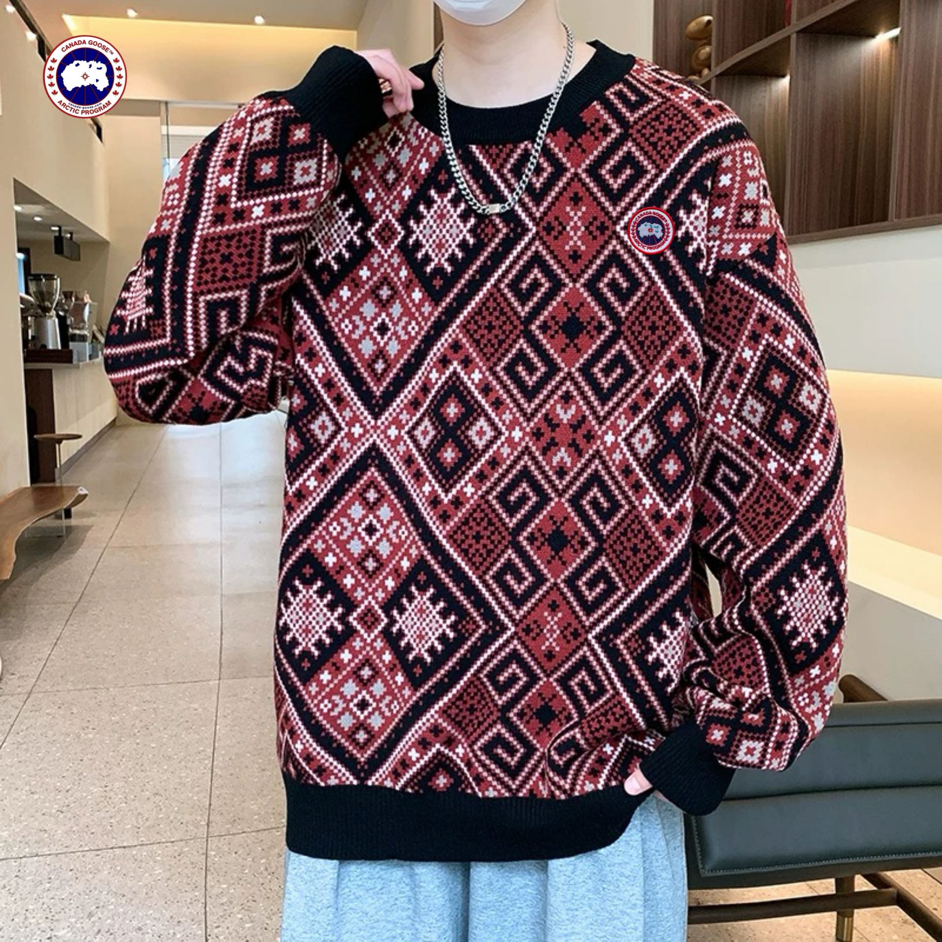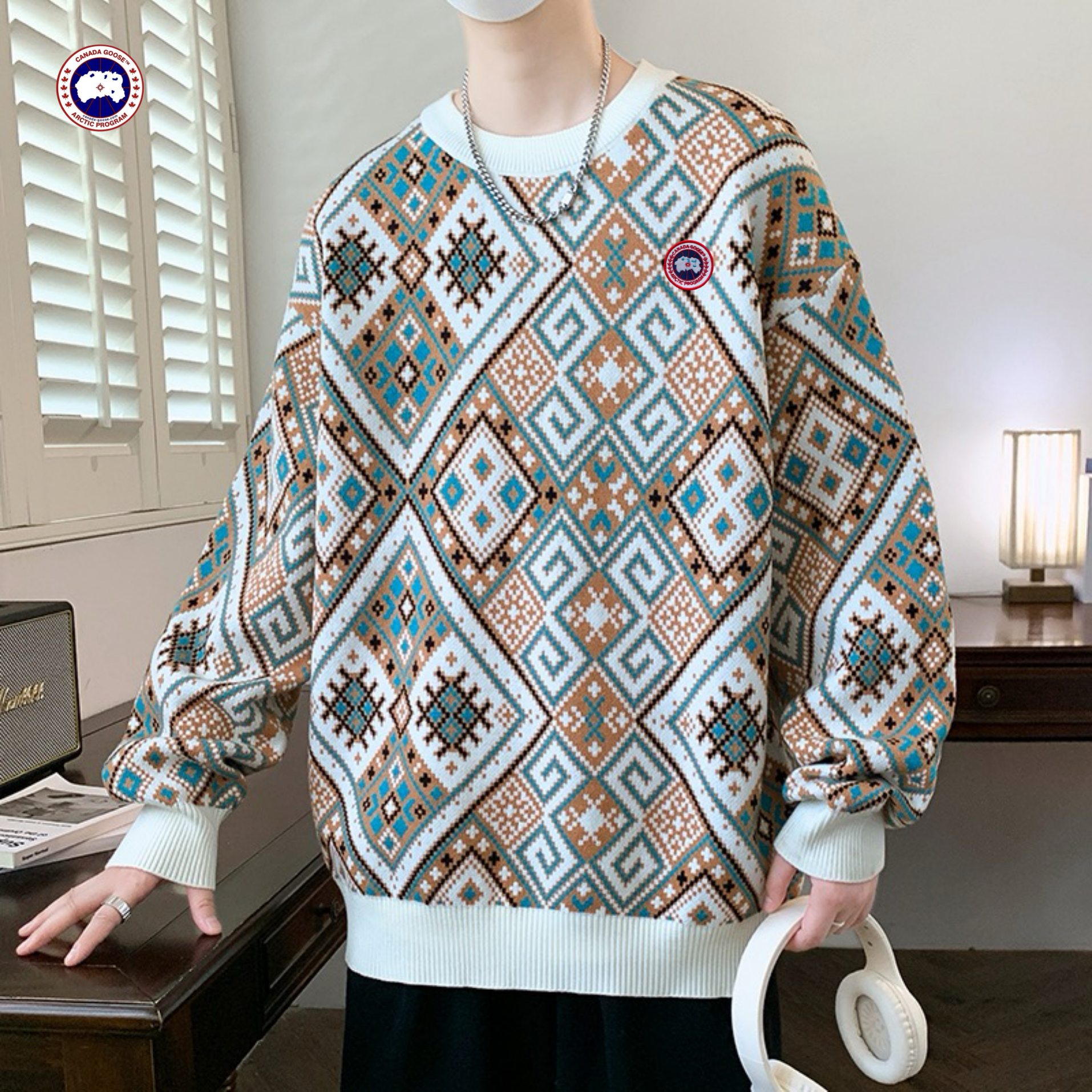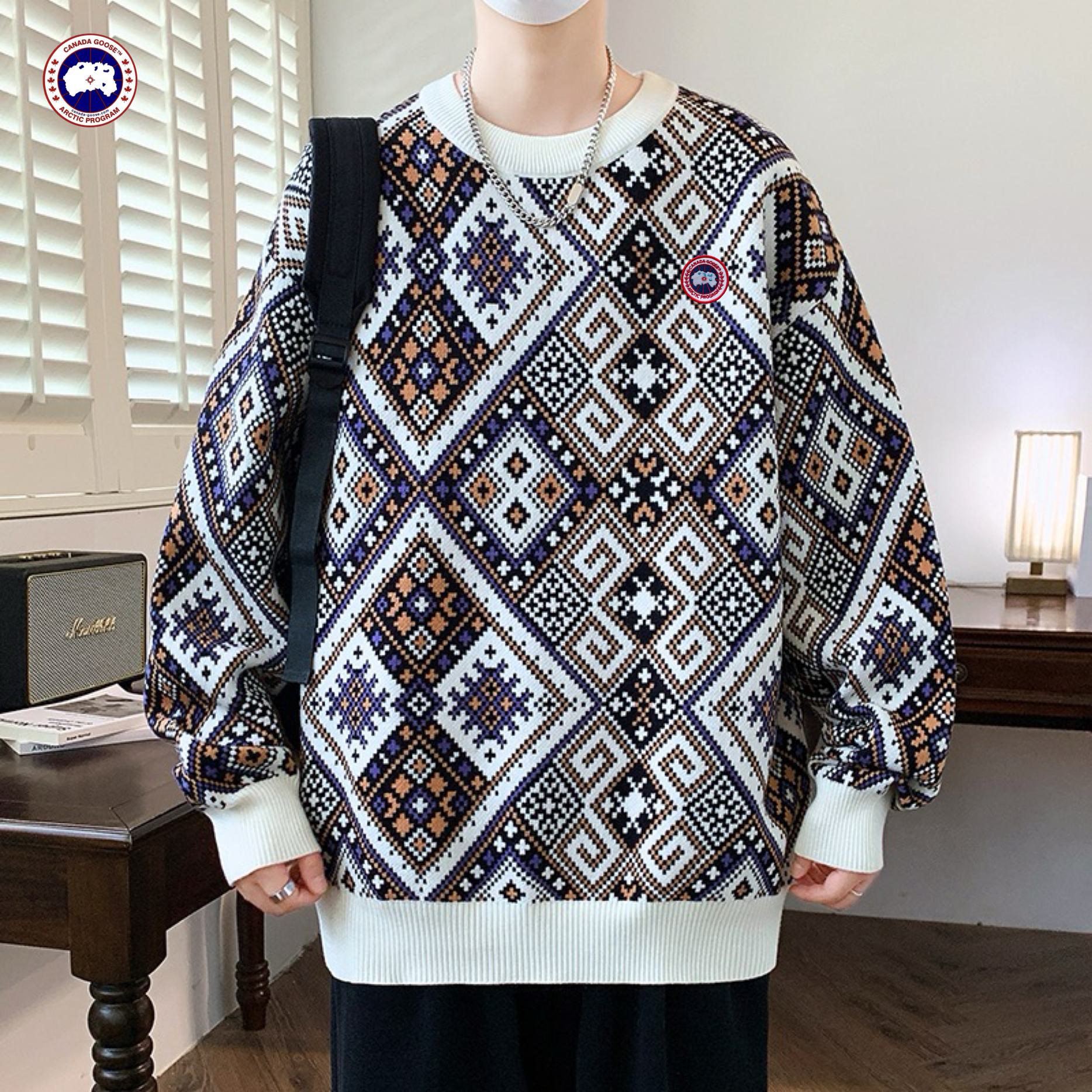 Canada Goose大鹅海外版26ss新款三色高品质刺绣宽松版拼色情侣款加厚毛衣