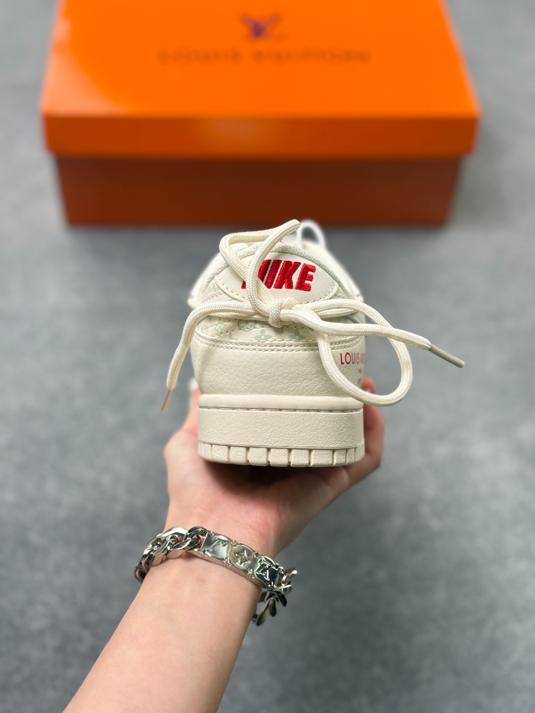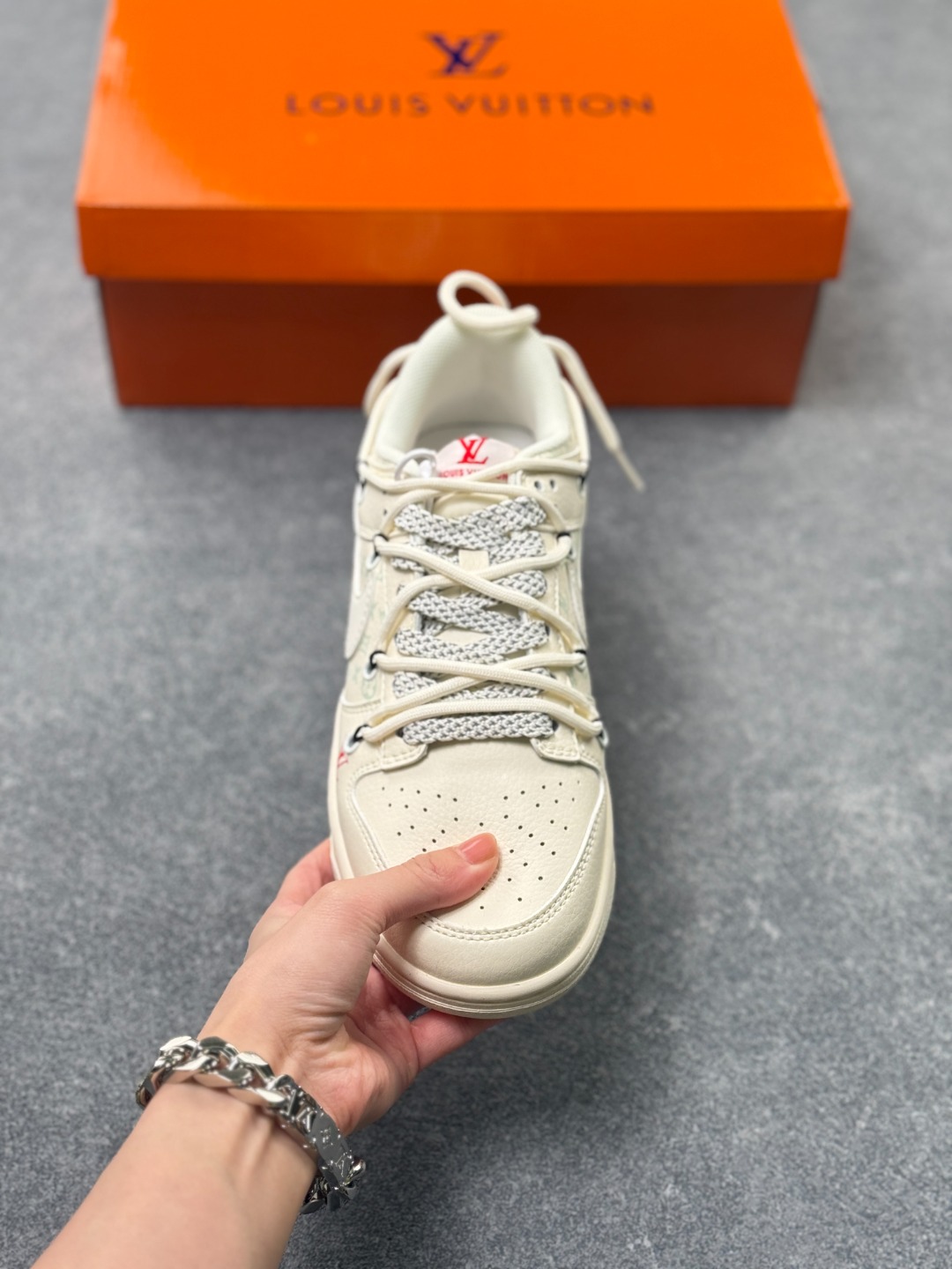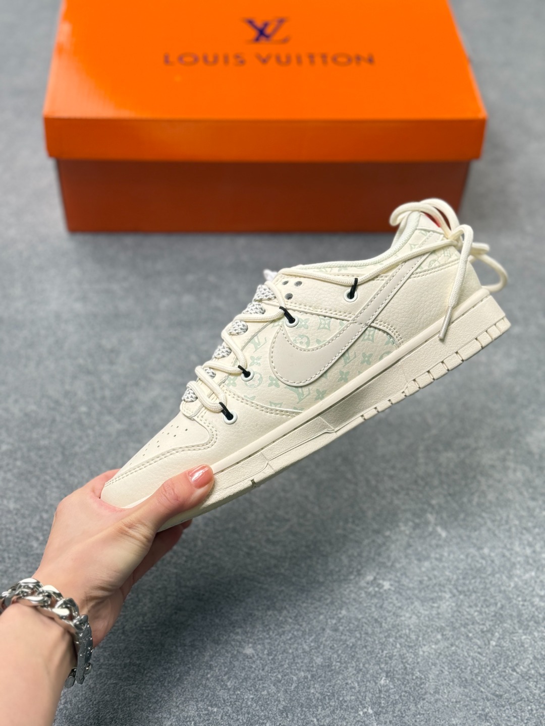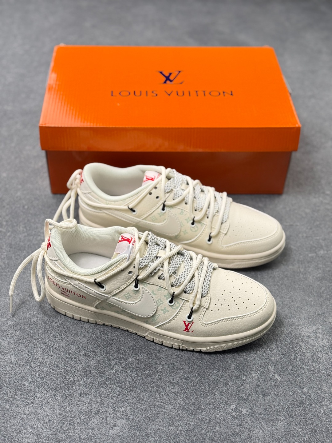 白调奢潮 经典重塑 Nike Dunk LowxLV联名款纯白主调的Nike Dunk Low遇上Louis Vuitton的奢雅基因 这双CX5050 Y52直接把奢潮融合的高级感拉满 奶白色的皮革鞋身质感细腻 浅调LV老花图案低调交织 红色的LV标识与 LOUISVUITTON 字样作为点缀 瞬间点亮视觉 撞色鞋带与细节挂饰更是为鞋款增添了设计巧思 DunkLow的经典低帮鞋型保留了利落的街头线条与舒适脚感 LV的奢品元素则为这双街头鞋款注入了高阶时尚感 每一处细节都藏着联名的独特匠心 不管是日常搭配打造简约高级的造型 还是作为收藏级的潮流单品 这双鞋都能成为你鞋柜里的 白月光 让你轻松拿捏奢潮结合的穿搭腔调 尺码 36 36 5 37 5 38 38 5 39 40 40 5 41 42 42 5 43 44 44 5 45 x71