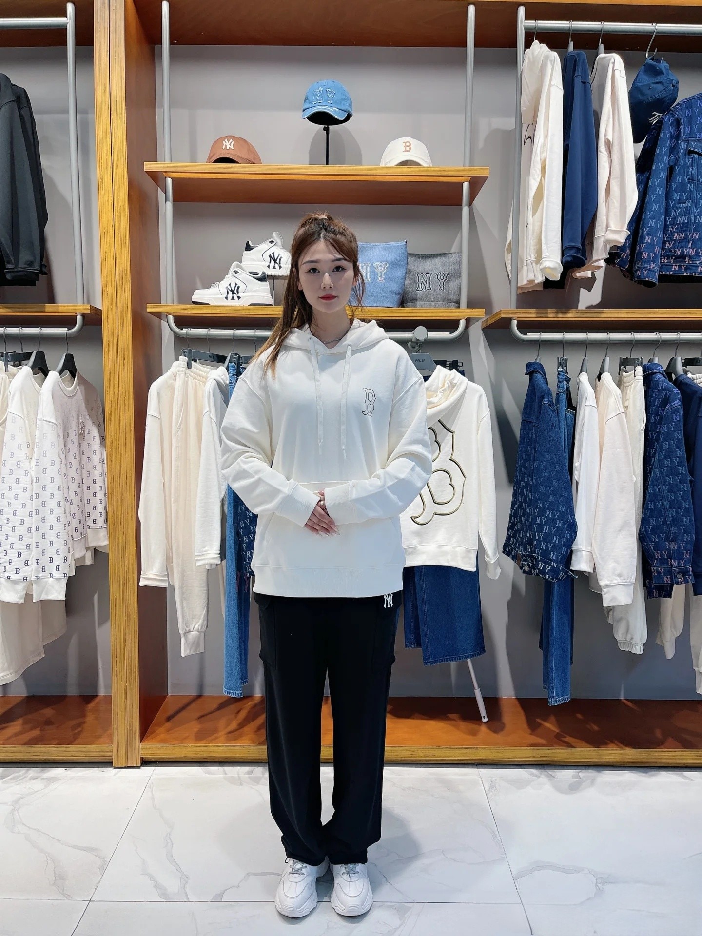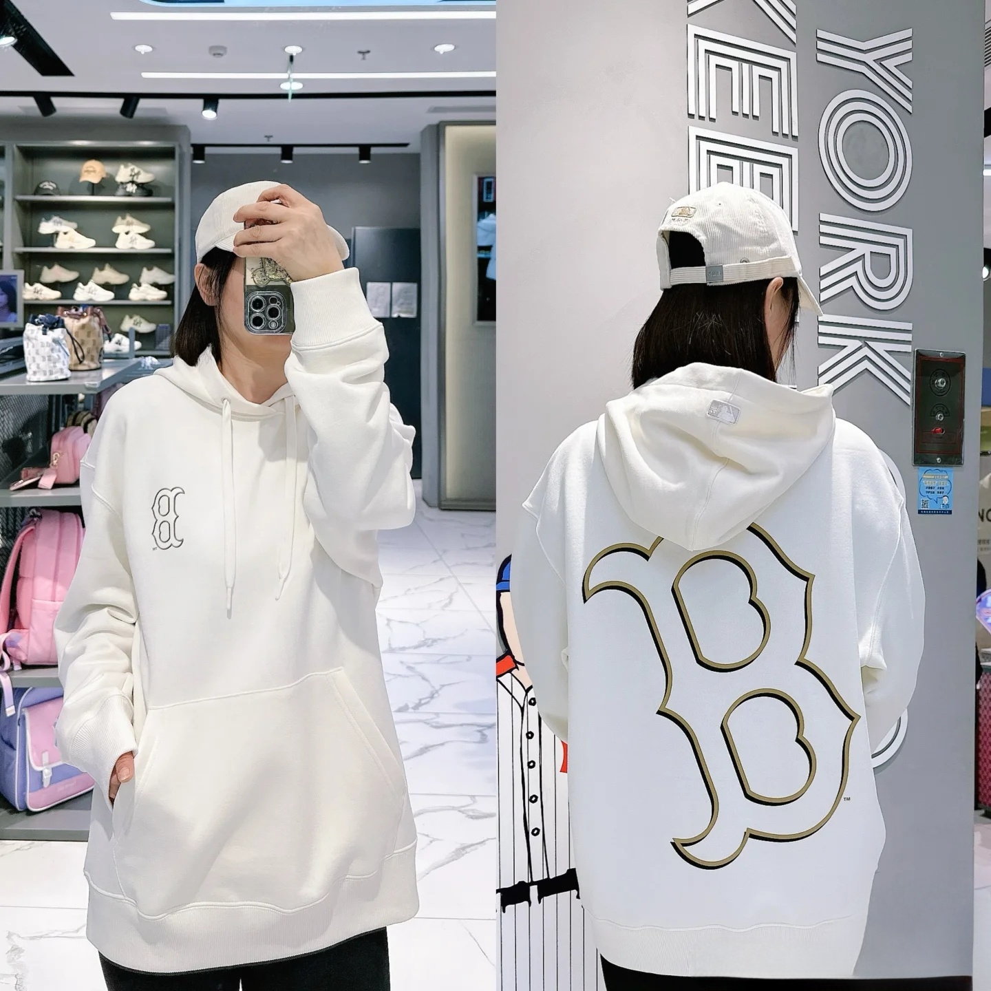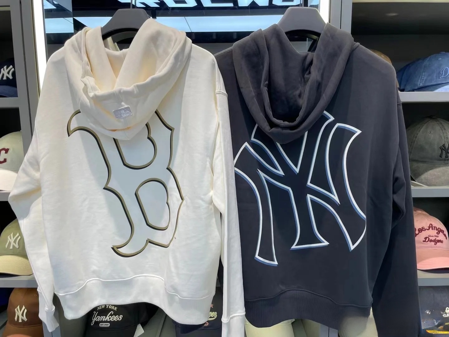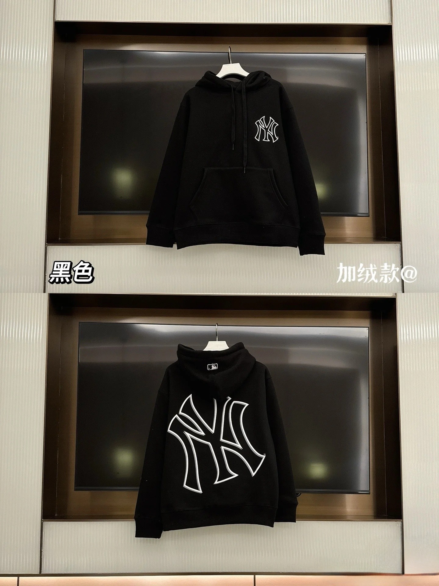 100142881 - MLB NY洋基队老花印花加绒连帽卫衣 男女同款情侣款连帽卫 350921