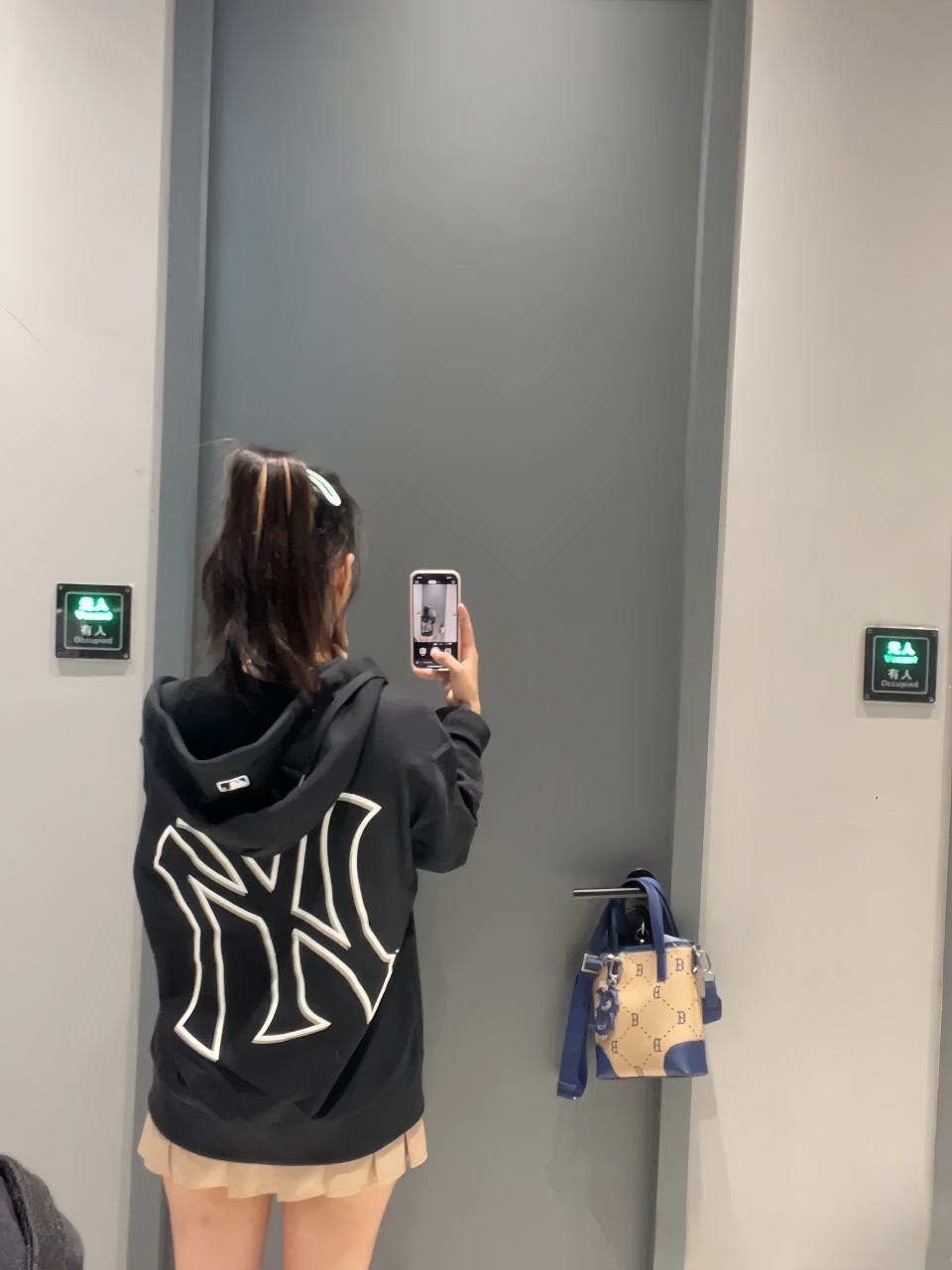 MLB NY洋基队老花印花加绒连帽卫衣 男女同款情侣款连帽卫衣